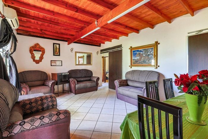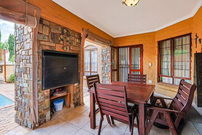 Effortless entertaining on the covered patio with built-in braai in a peaceful neighbourhood, open-plan living with granite kitchen and fireplace — three bedrooms, two bathrooms, double garage.