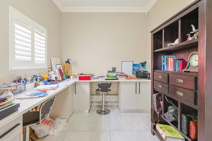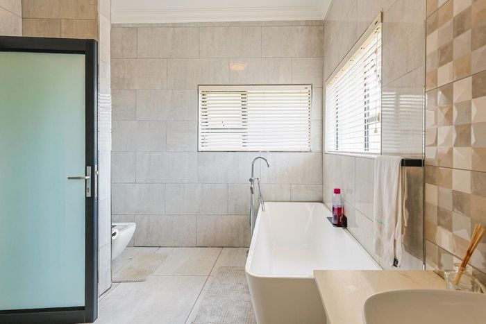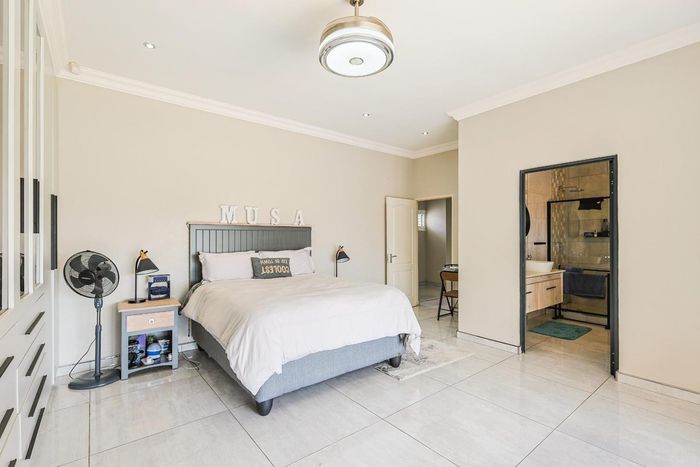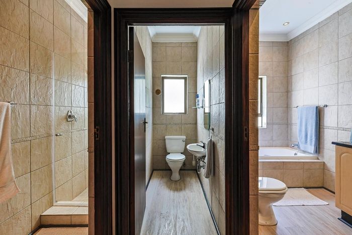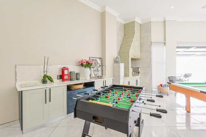 Entertain effortlessly in a sought-after Pretoria East estate, with flowing open-plan living and a built-in braai entertainment area — five bedrooms, five bathrooms, double garage.