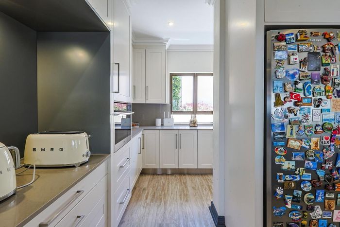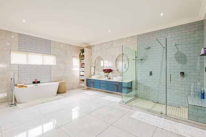 Effortless entertaining in Erasmuskloof's gated Constantia Glen — indoor-outdoor entertainment with built-in braai and heated pool, plus five bedrooms, four bathrooms and a four-car garage.