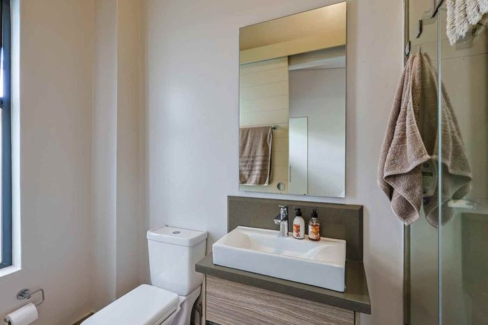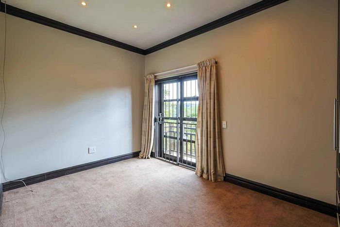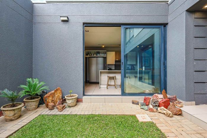 Enjoy relaxed estate living with an expansive private garden and alfresco braai patio, light-filled open-plan living and main-bedroom balcony—two bedrooms, two bathrooms, covered parking.