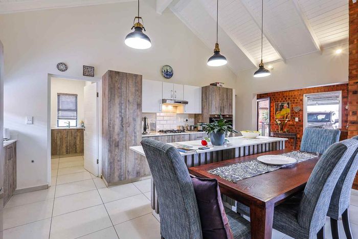 Family-friendly home in a quiet, secure neighborhood with entertaining garden, enclosed braai room and sparkling pool. Solar-equipped, open-plan living with four bedrooms, three-and-a-half bathrooms and triple garage.
