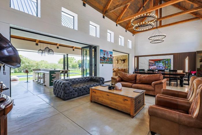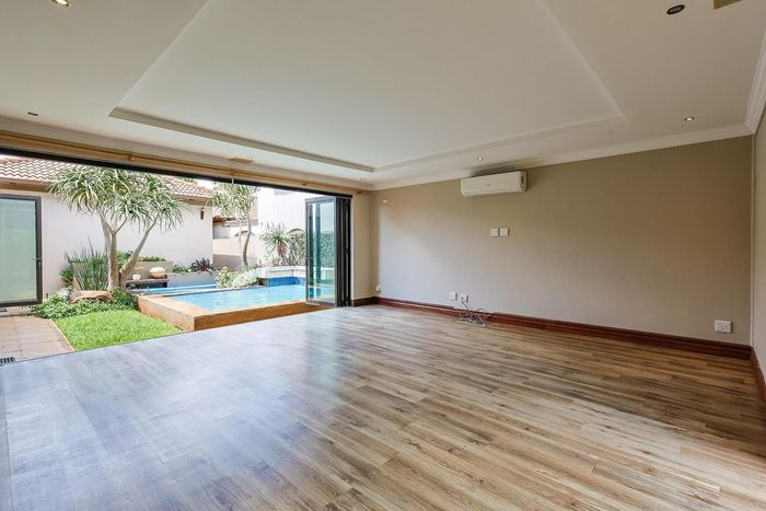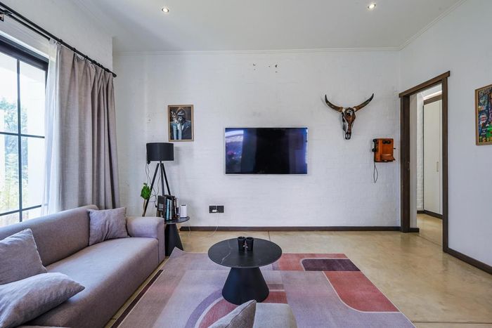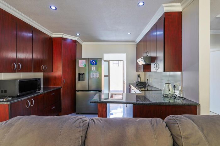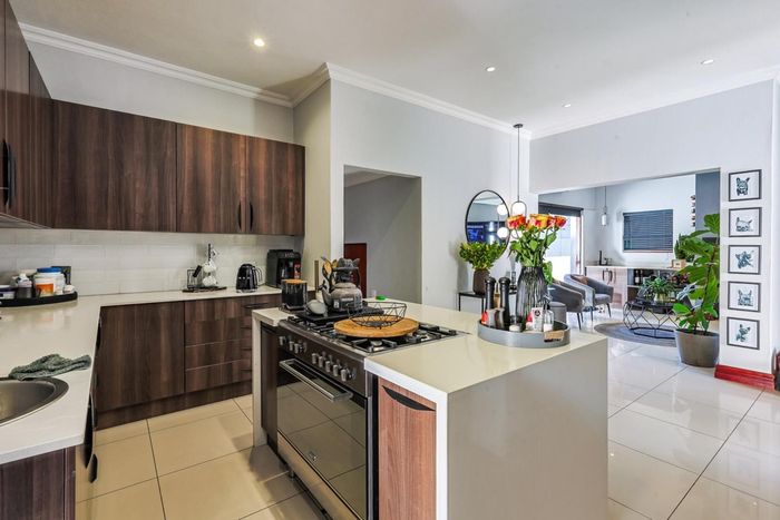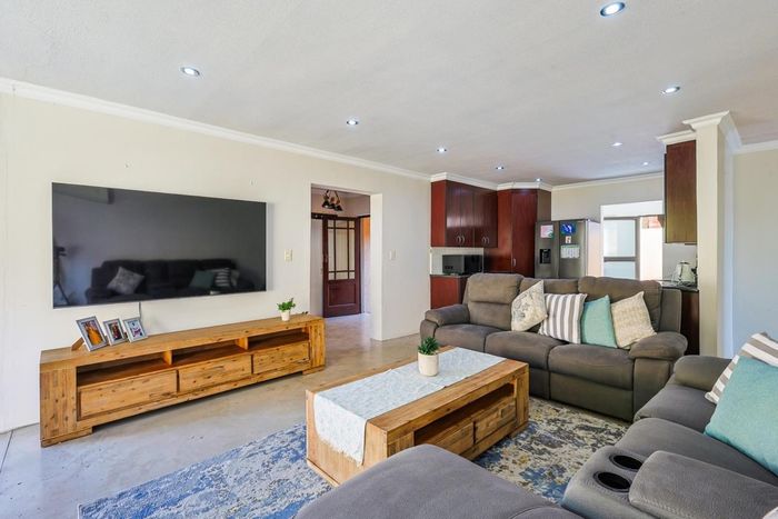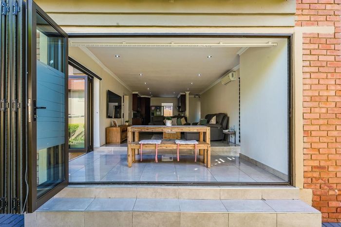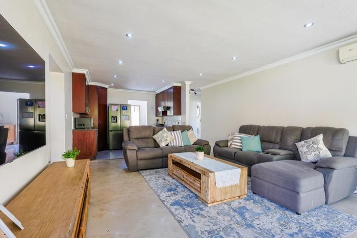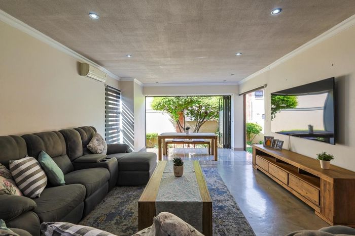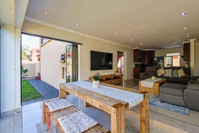 Effortless entertaining and family living in Stanford Manor, Equestria — open-plan kitchen and TV room flow to a patio with built-in braai and small garden; three beds, two baths, double garage.