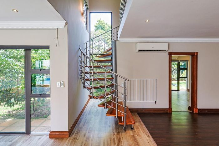 Enjoy relaxed family living in Equestria, moments from Simon Vermooten Road shops, with an open-plan modern kitchen, upstairs balcony and expansive yard; three beds, three baths, double garage.