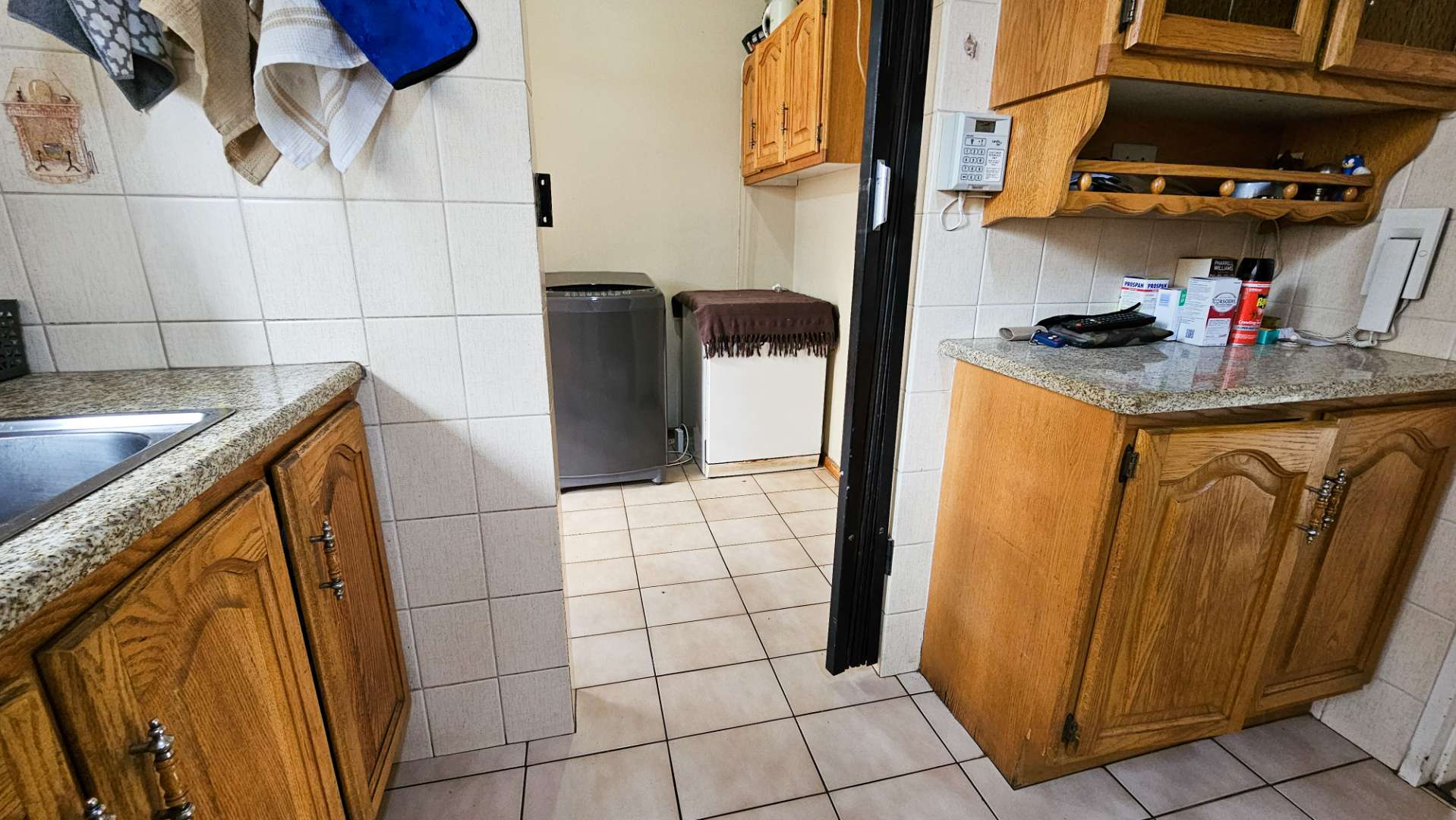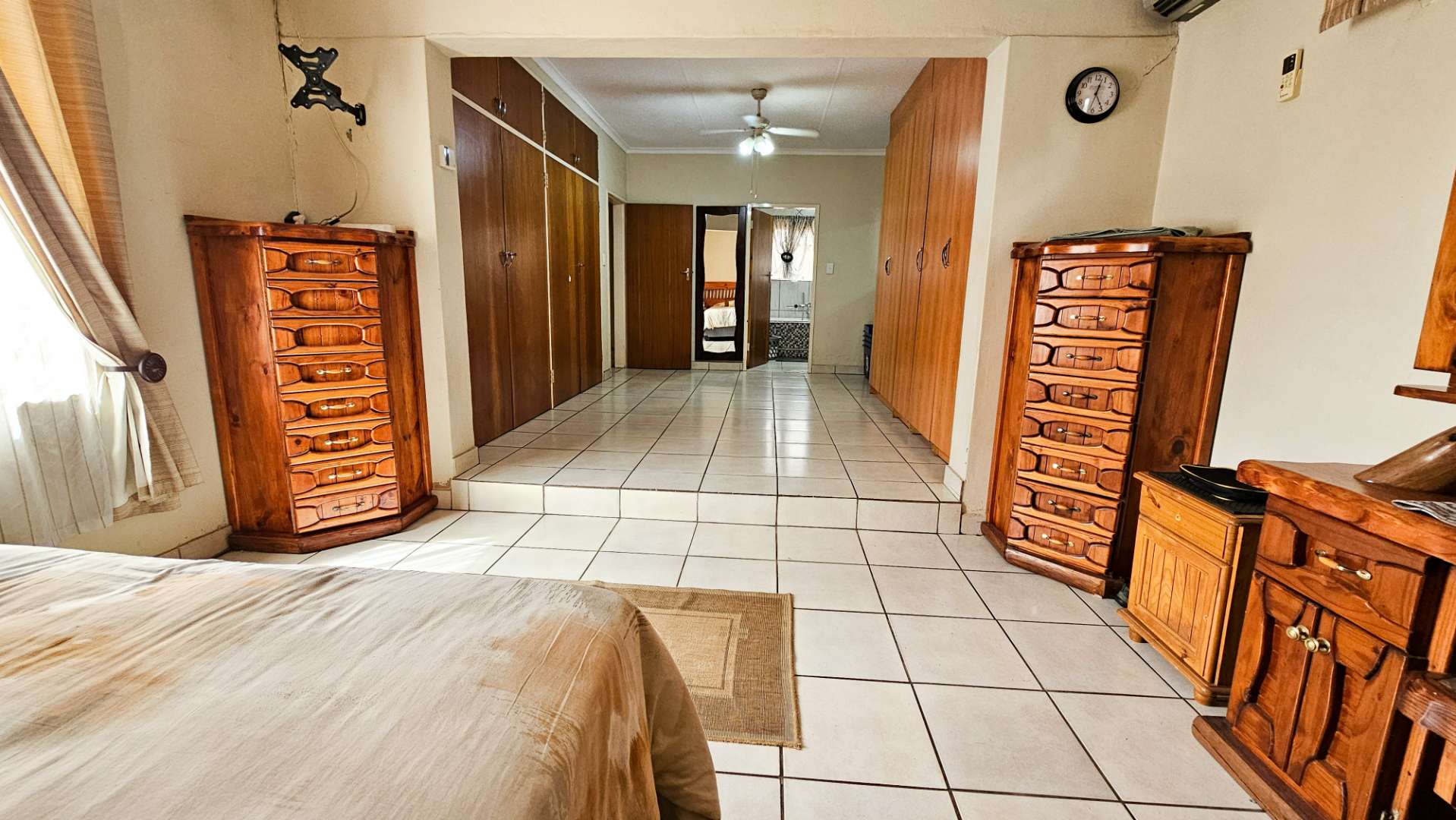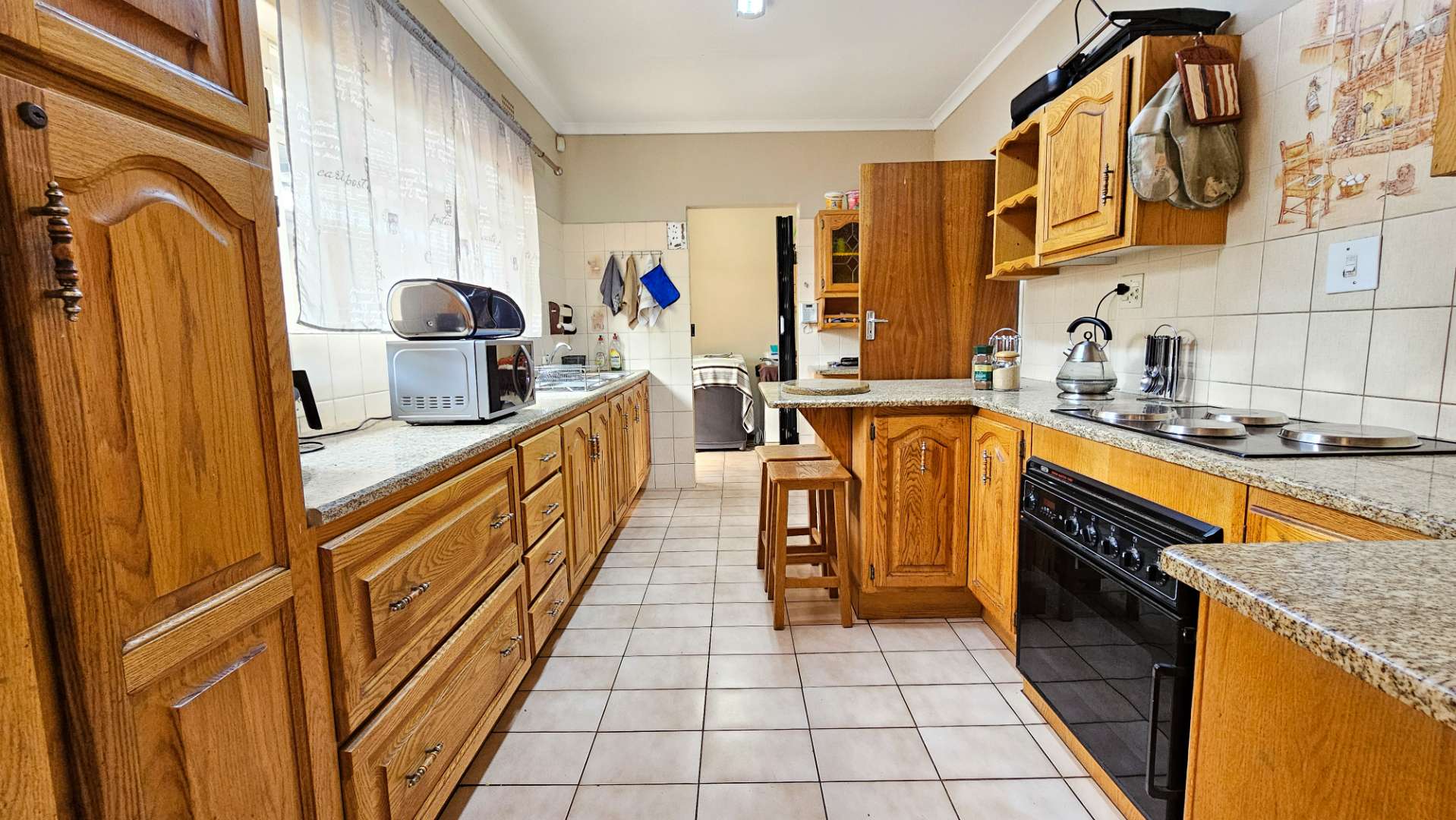 The home flows seamlessly through a spacious living/TV room and dedicated dining area, leading into a well-appointed kitchen with ample cupboard space and a separate scullery – perfect for keeping things neat and functional.