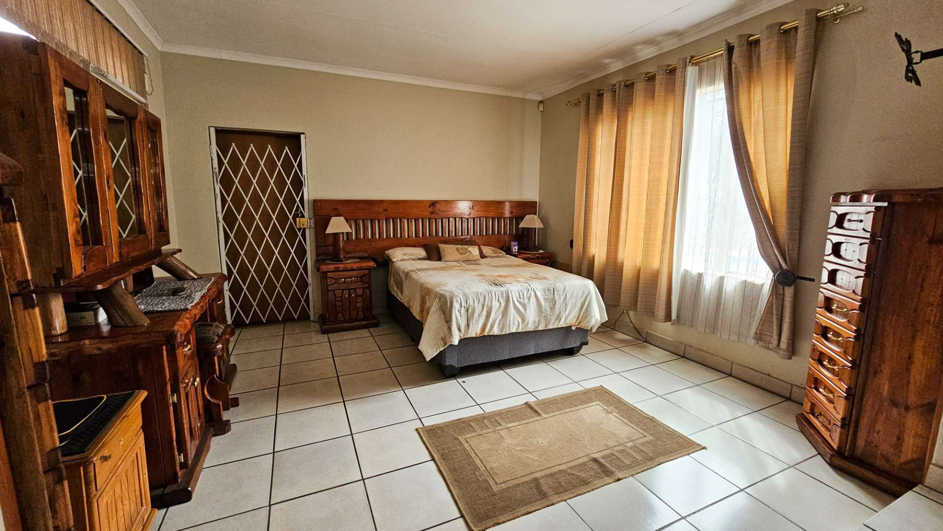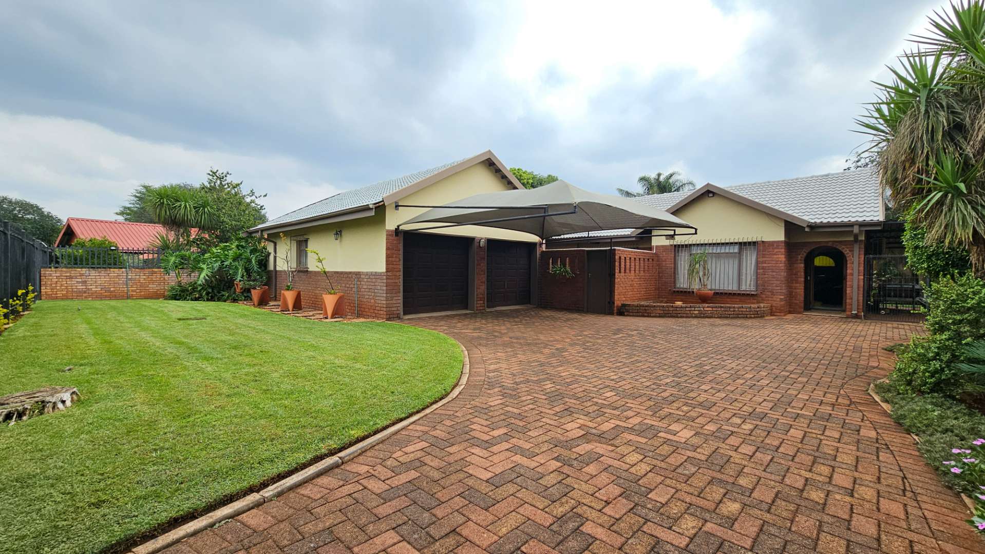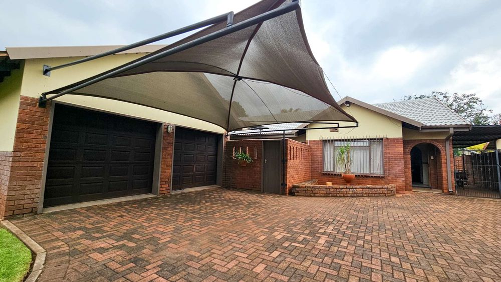 Parking is more than sufficient with a double garage, double shade-net carport, and an additional carport alongside the house.