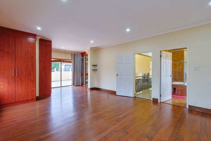 Family-focused living in The Glades with clubhouse, scenic dams and walkways; enclosed braai with dam views and a mini-forest backyard — three bedrooms, 3.5 bathrooms, five-car garage.