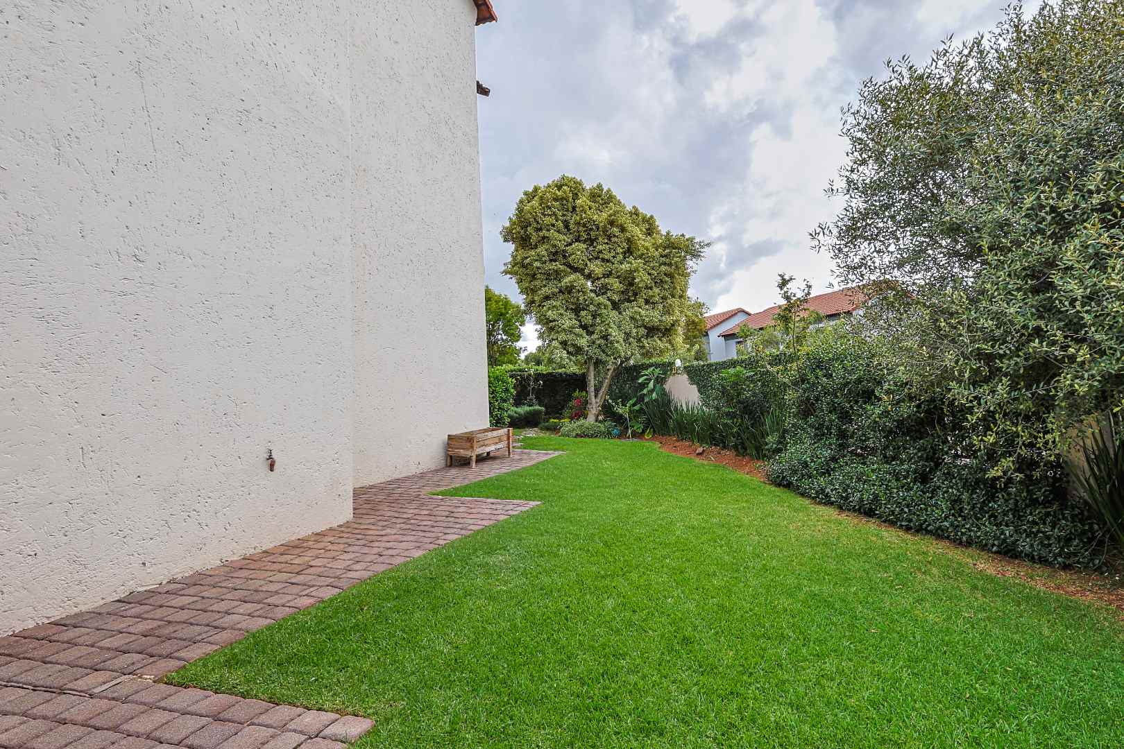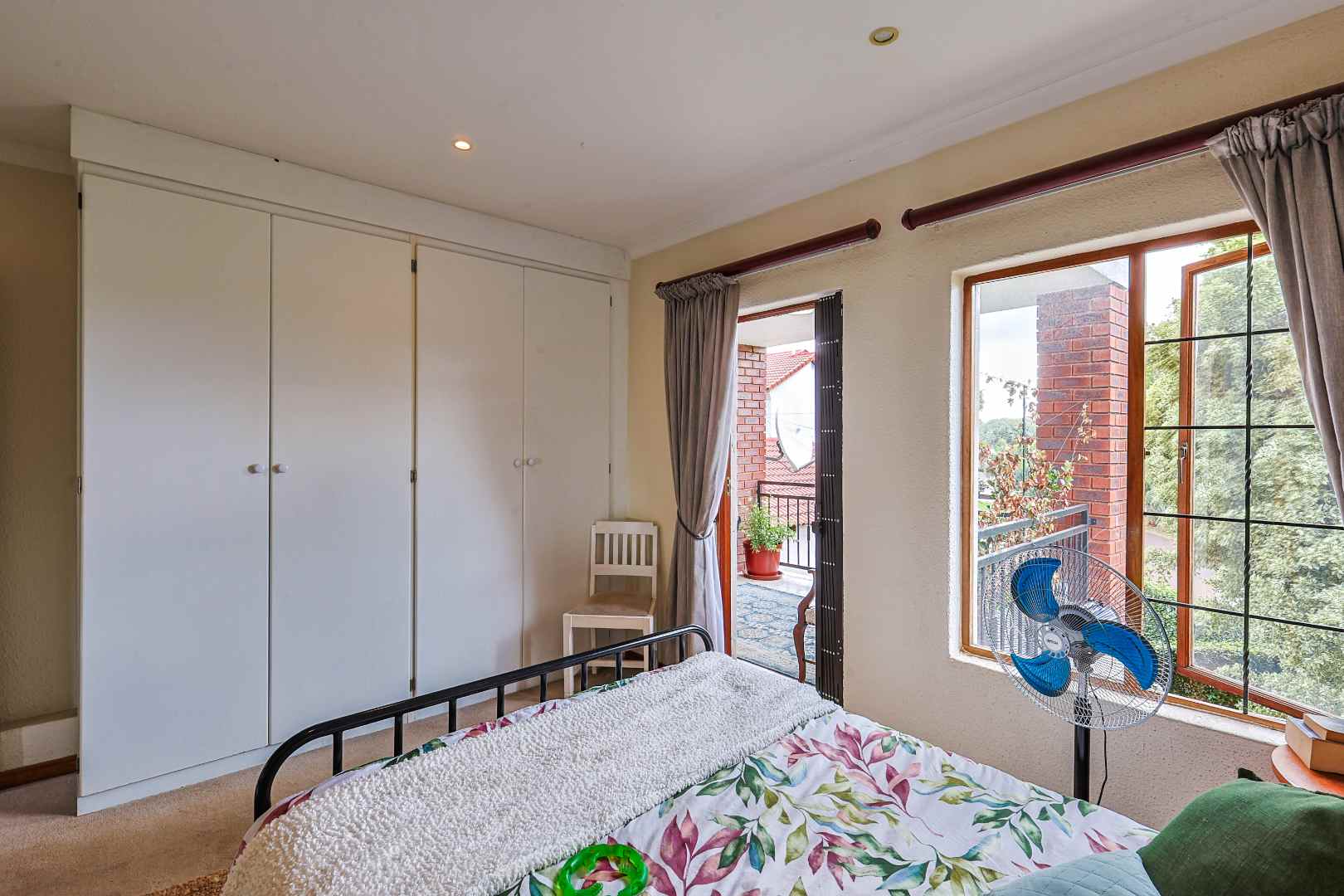 Upstairs, the main bedroom opens onto a private balcony overlooking the beautifully maintained garden – the perfect spot to unwind.