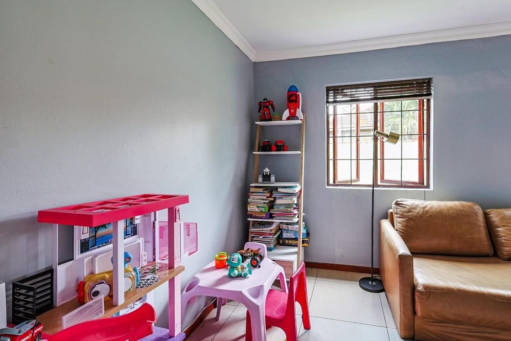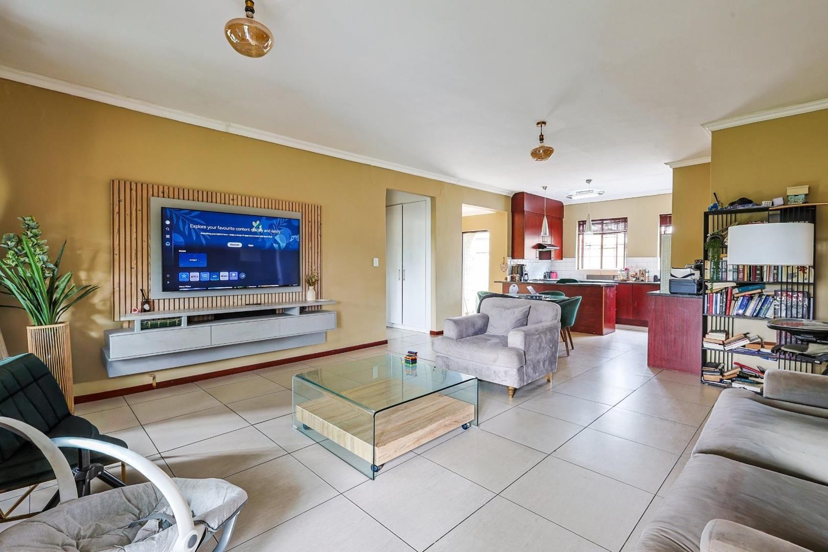 The TV lounge/family room opens onto a covered patio with a built-in braai, perfect for entertaining. A wrap-around garden provides additional outdoor space for relaxation or family enjoyment.