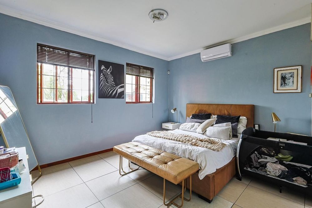To the left of the home are two well-sized bedrooms that share a bathroom with a shower. One of these bedrooms is fitted with air conditioning. The main bedroom, located to the right, offers privacy and comfort with air conditioning and a full en-suite bathroom.