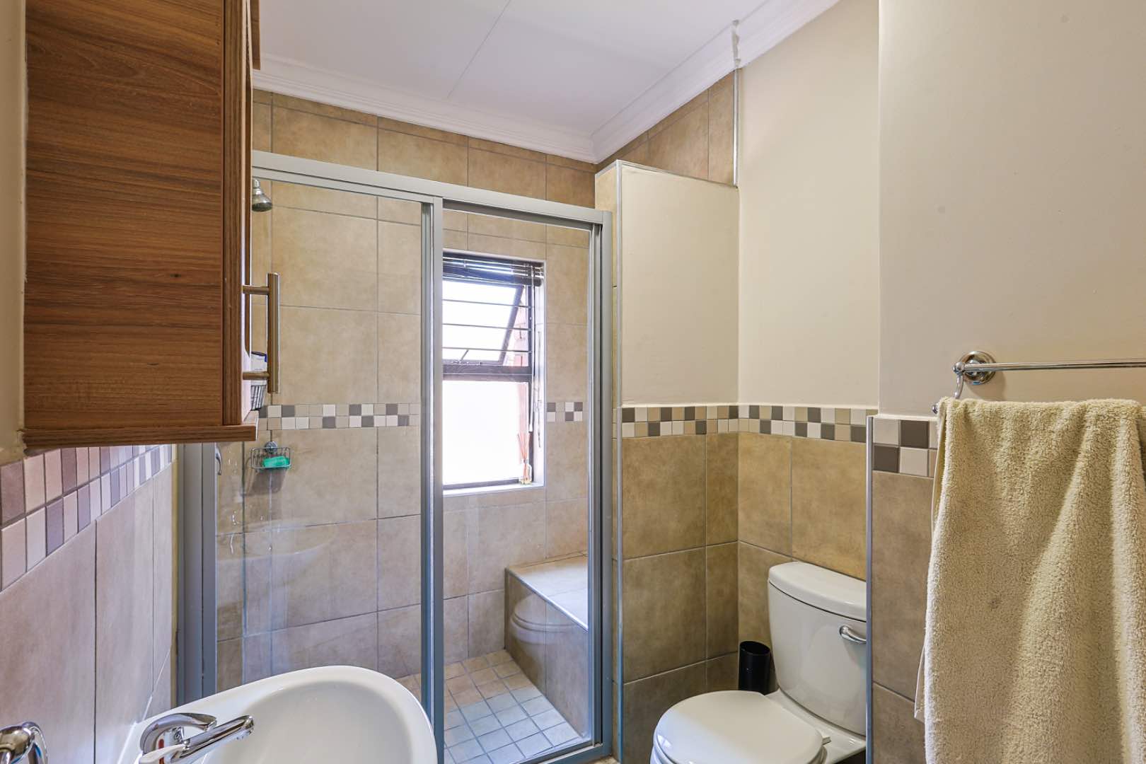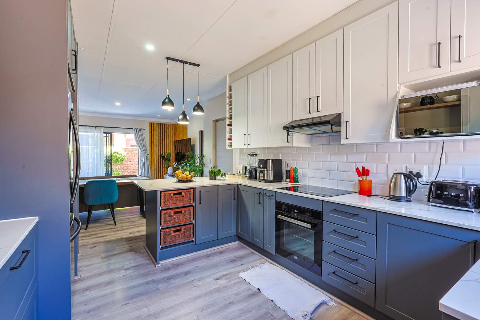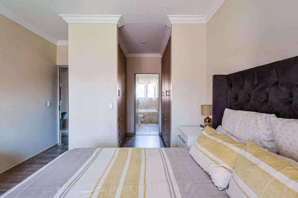 The townhouse features three generously-sized bedrooms. The main bedroom boasts an en-suite bathroom for added privacy and convenience. The additional two bedrooms share a well-appointed bathroom, ensuring ample space for family or guests.