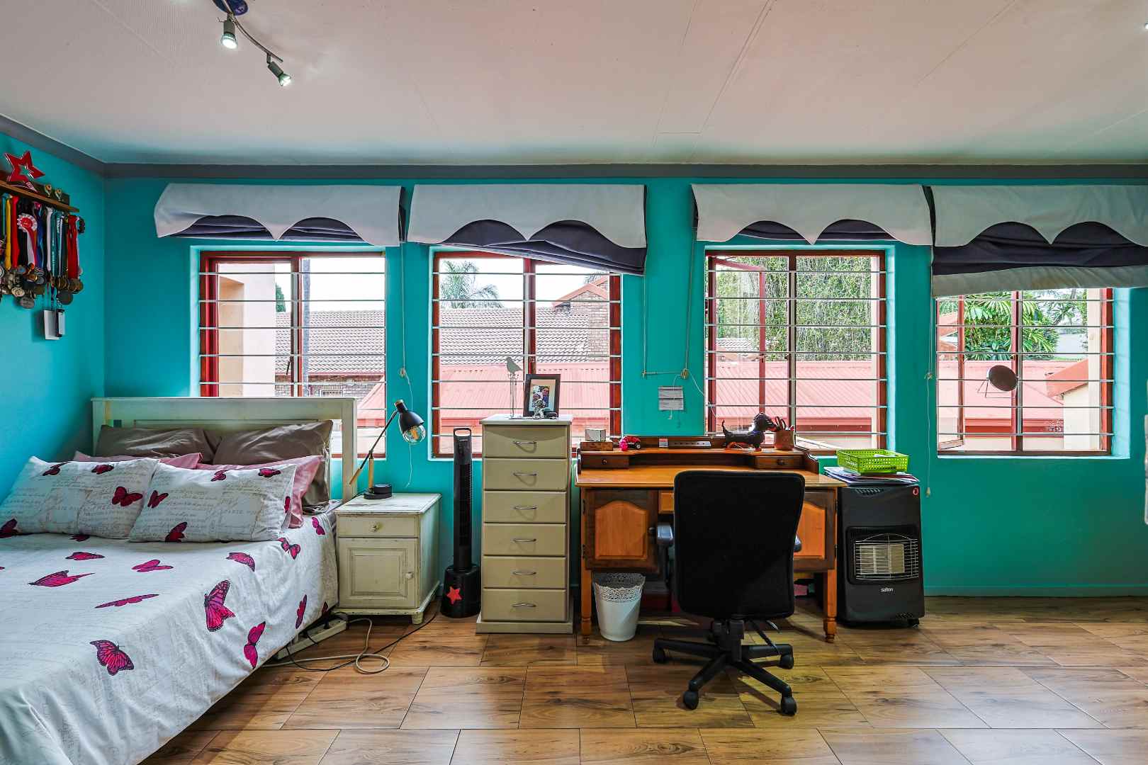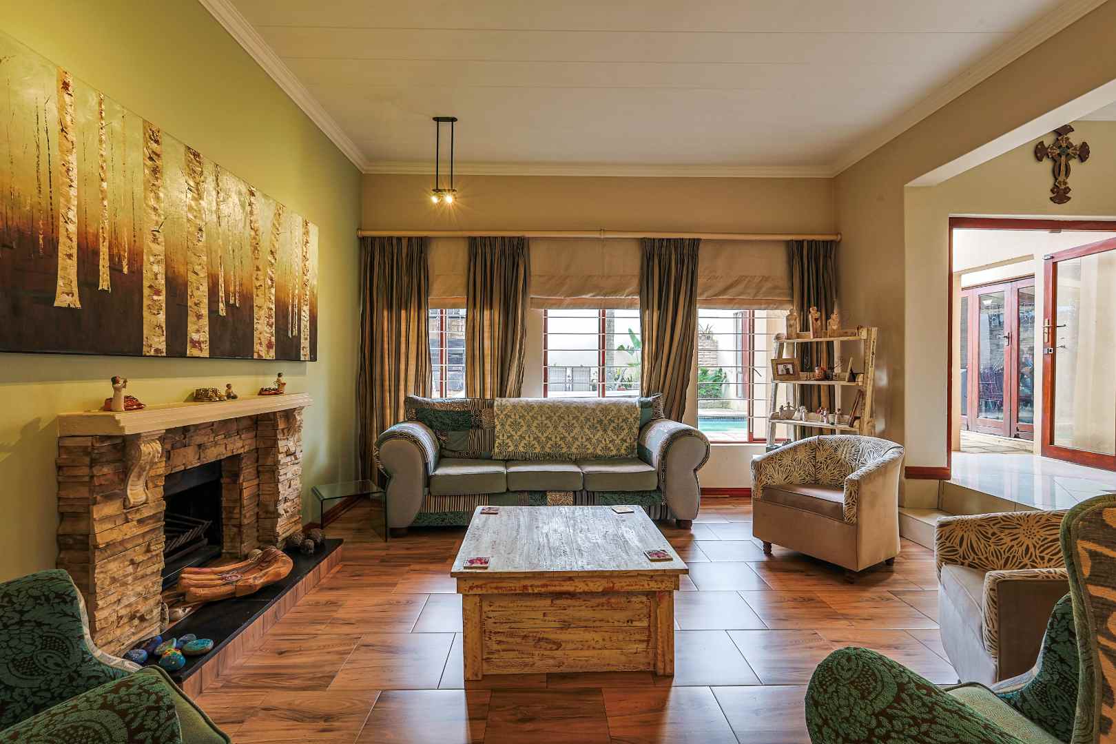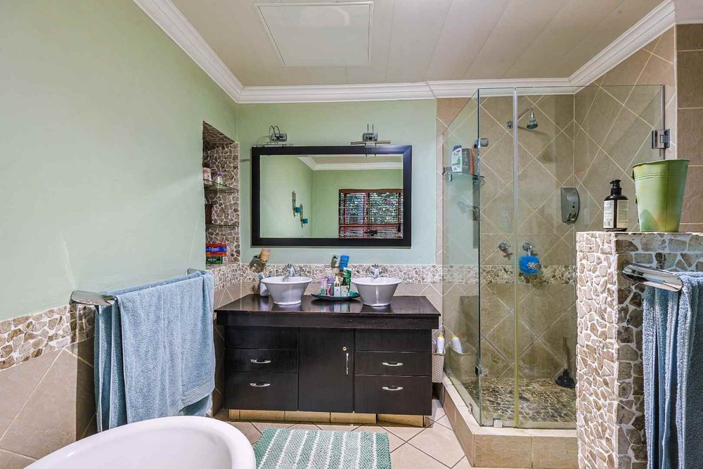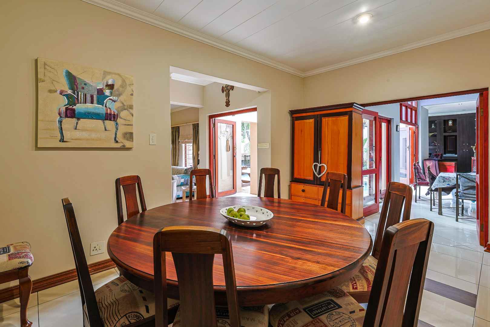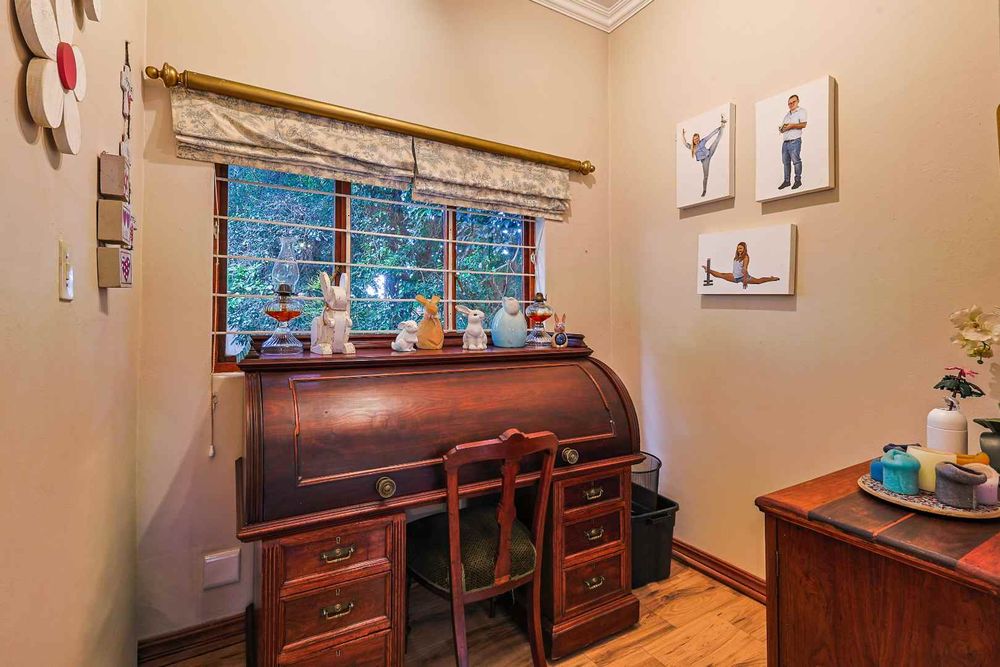 The entertainment area is where this property truly shines — a superb indoor-outdoor space complete with a built-in braai, granite counters, and a charming gazebo, all overlooking a sparkling pool fitted with a heat pump. This is a home made for gatherings, celebrations, and relaxed weekends.