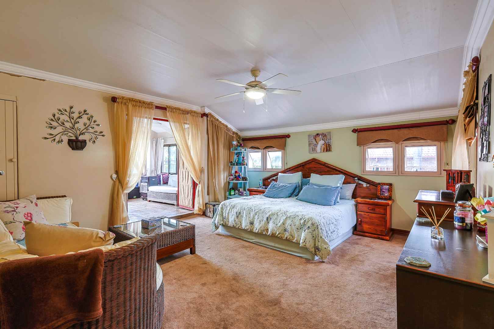 Accommodation is generous and versatile, offering five spacious bedrooms. The main suite is a true retreat, boasting its own private lounge, a walk-in dressing room, and a beautifully appointed full bathroom. A separate guest suite, conveniently located near the garage, provides the perfect solution for extended family, guests.