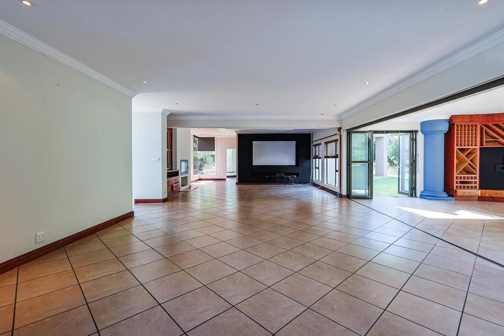 Upon entry, a striking double-volume entrance hall with a chandelier welcomes you into warm and inviting open-plan living areas, including a theatre lounge, TV lounge with bar, and dining area.
