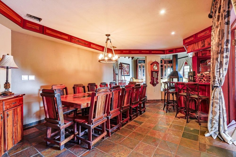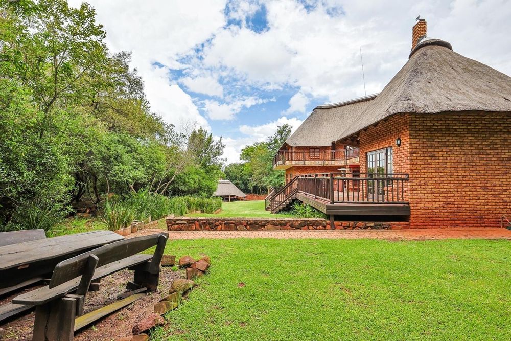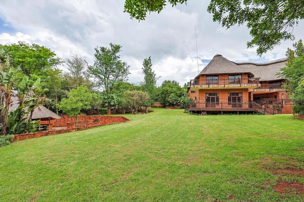 Discover an extraordinary thatch residence masterfully crafted to evoke the tranquillity, warmth and timeless charm of a luxury Bush lodge. Situated within the prestigious Mooikloof Equestrian Estate, this exceptional 5-bedroom home offers an unmatched blend of exclusivity, natural beauty and refined family living.