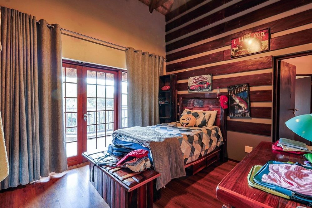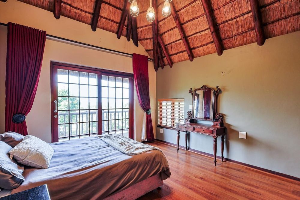 All five bedrooms open onto a wraparound balcony showcasing sweeping panoramic views — a rare luxury that reinforces the feeling of living in an exclusive safari lodge.