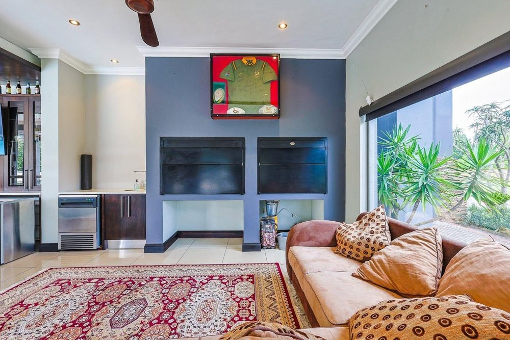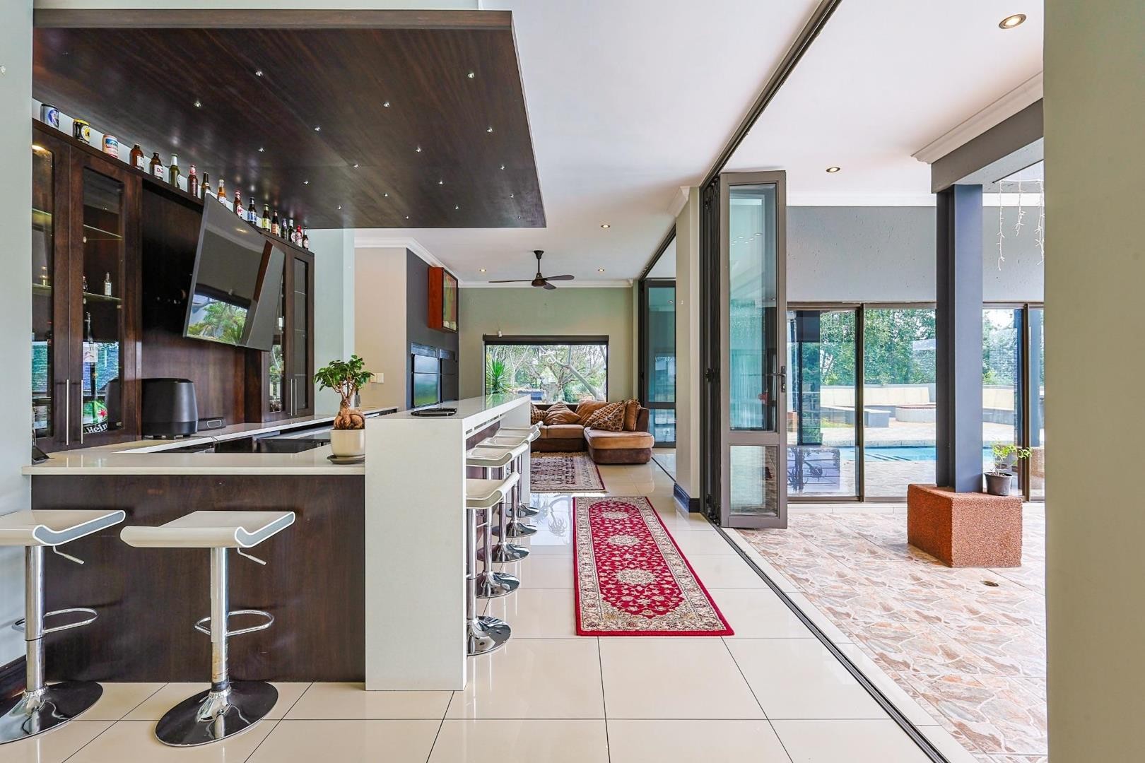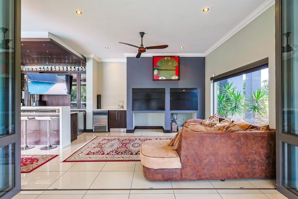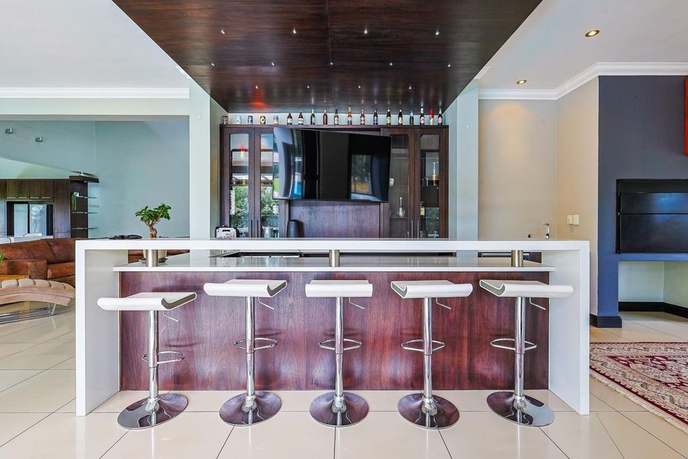 Entertaining is effortless with a dedicated bar area, a boma, and a built-in braai. The beautifully landscaped garden, complete with an irrigation system, surrounds a sparkling heated swimming pool, creating a peaceful outdoor haven on a generous 5,000m2 stand.