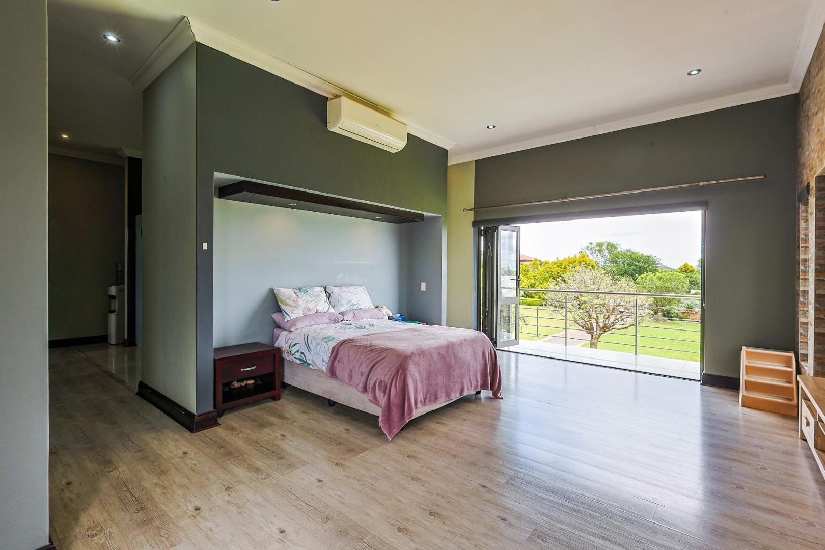 Upstairs, the luxurious main bedroom suite offers a private retreat with its own balcony and sweeping panoramic views.
