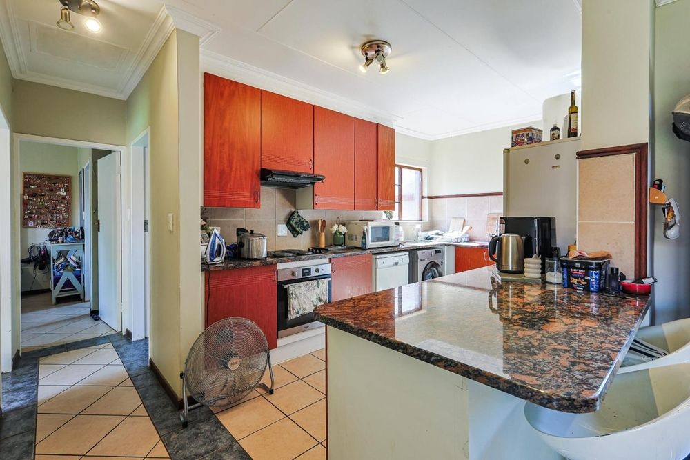 The open-plan layout allows for easy everyday living, with a seamless flow from the entrance through to the dining area, kitchen, and lounge. The kitchen is both functional and inviting, featuring rosewood countertops, ample cabinetry, and a scullery with space for two under-counter appliances which is ideal for modern living.