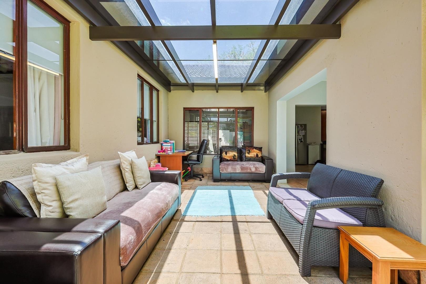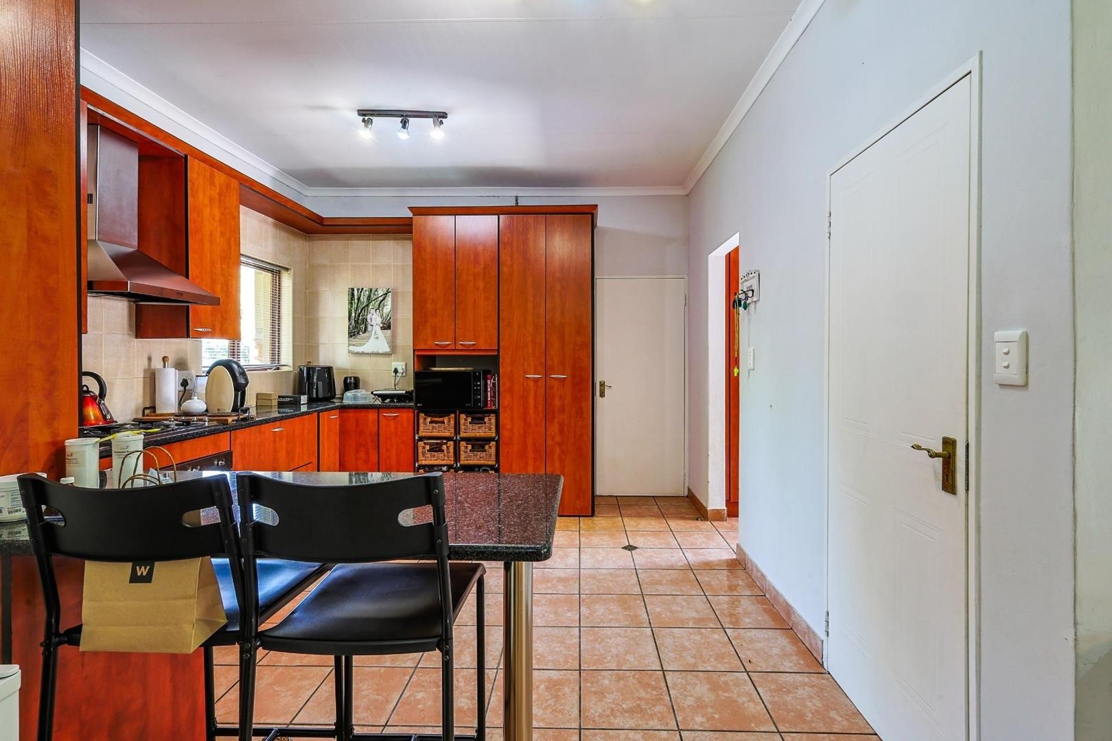 Step inside to expansive, versatile open-plan spaces flowing effortlessly from the welcoming foyer to a beautiful, private garden retreat. The sleek, designer kitchen is the heart of the home, featuring granite countertops, a bright breakfast nook, and a separate scullery.