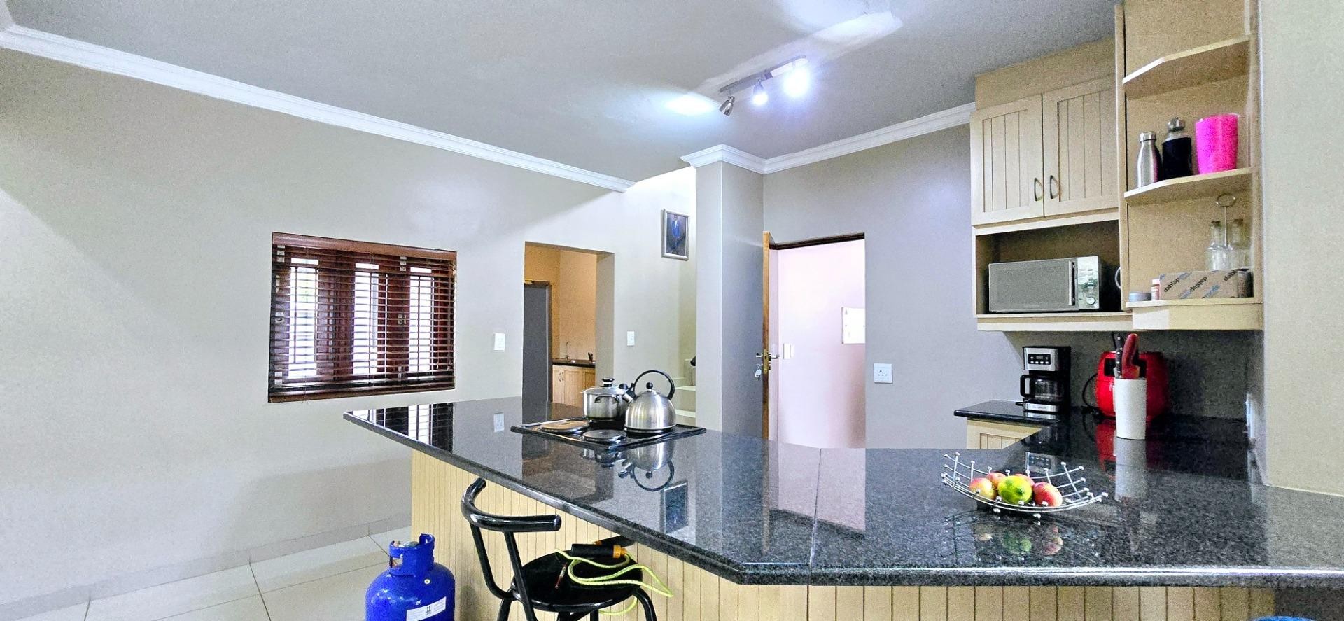 Step outside from the dining room to a charming patio, featuring a built-in braai, ready for you to create lasting memories with loved ones. The serene private garden sets the stage for intimate outdoor events or a quiet retreat.
