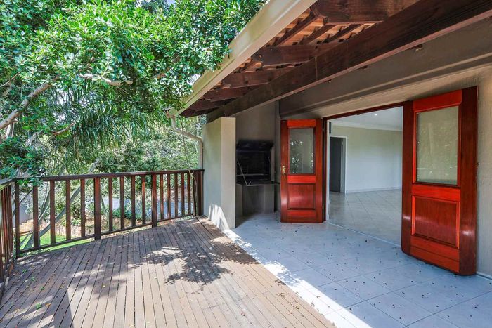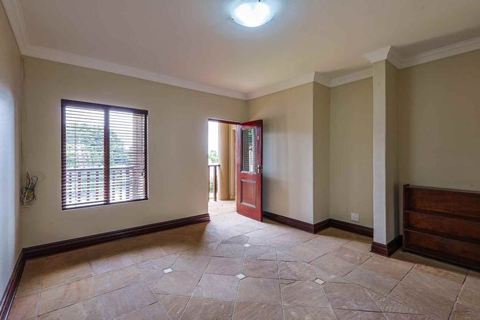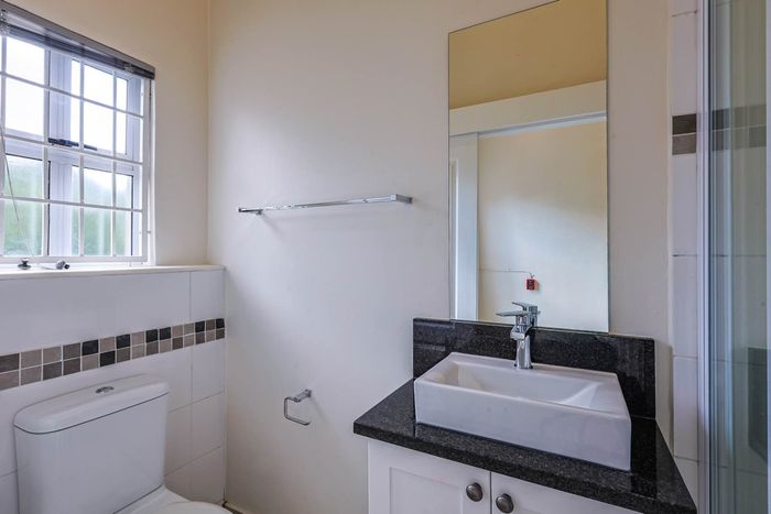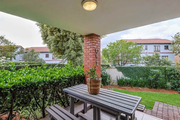 Enjoy relaxed estate living with an expansive private garden and alfresco braai patio, light-filled open-plan living and main-bedroom balcony—two bedrooms, two bathrooms, covered parking.