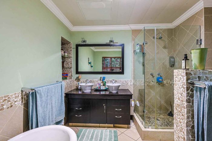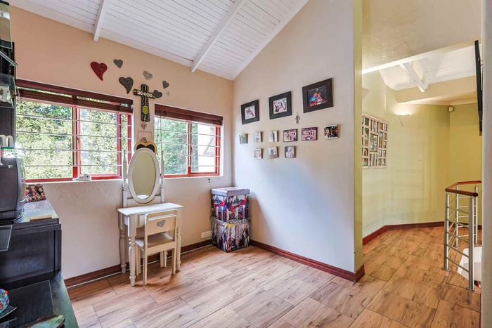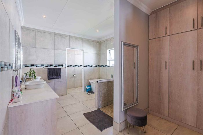 Enjoy secure, active estate living in Pretoria East's Woodlands Lifestyle Estate, with pools and courts. Double-storey home, open-plan living, 8kW solar and battery, four bedrooms, two bathrooms and double garage.