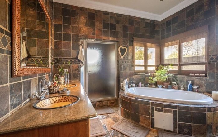 Ridge-top living in Moreleta Park with sweeping suburban vistas and seamless indoor–outdoor flow; entertainer’s level features an eight-seat indoor jacuzzi. Five bedrooms, three bathrooms, double garage.