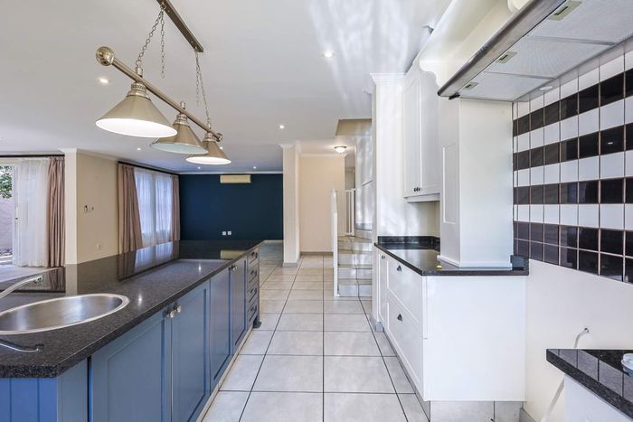 Effortless entertaining and family living in Stanford Manor, Equestria — open-plan kitchen and TV room flow to a patio with built-in braai and small garden; three beds, two baths, double garage.