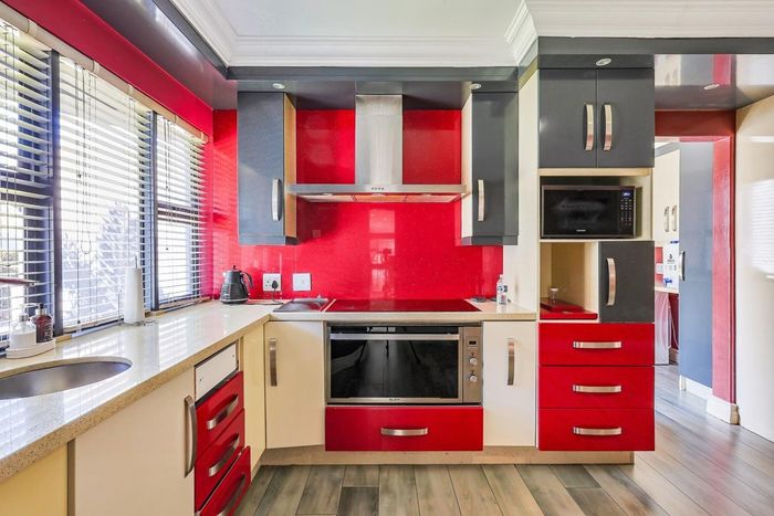 Family-friendly home in a quiet, secure neighborhood with entertaining garden, enclosed braai room and sparkling pool. Solar-equipped, open-plan living with four bedrooms, three-and-a-half bathrooms and triple garage.