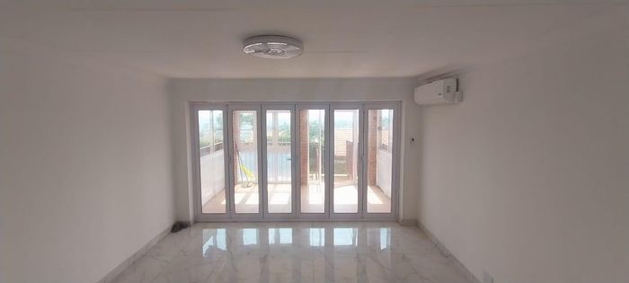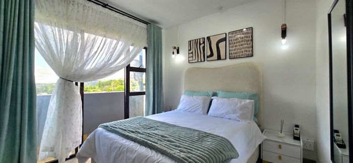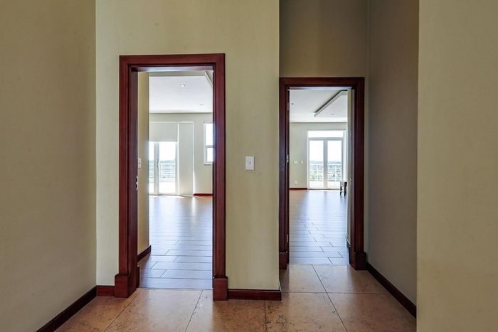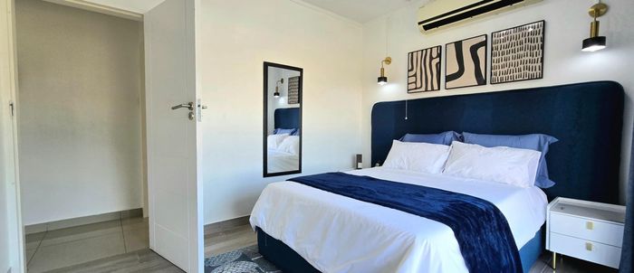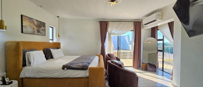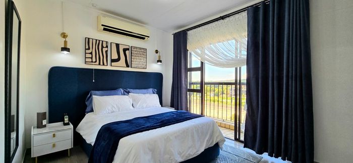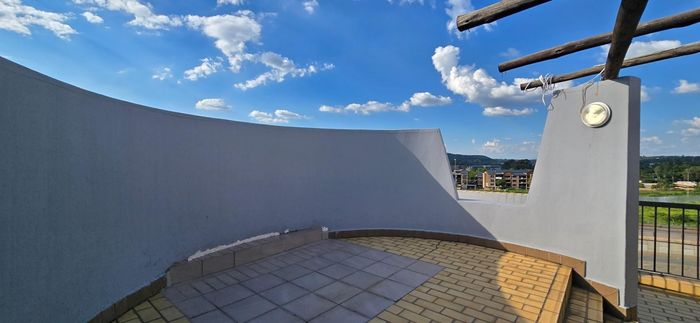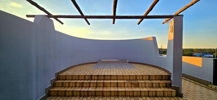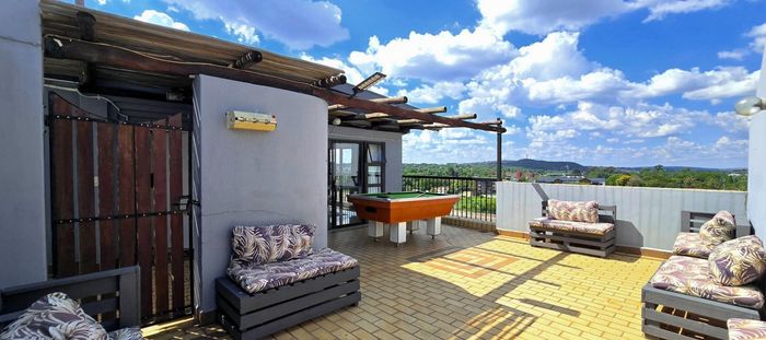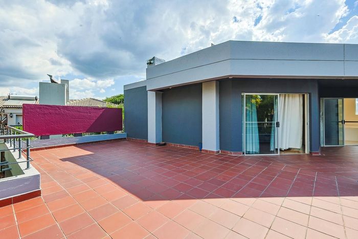 Elevated urban living in Pretoria East, steps from Menlyn — fully furnished top-floor penthouse with expansive terrace and panoramic city views, private hot-tub primary suite; three bedrooms, two baths.