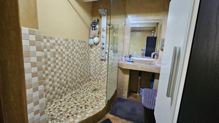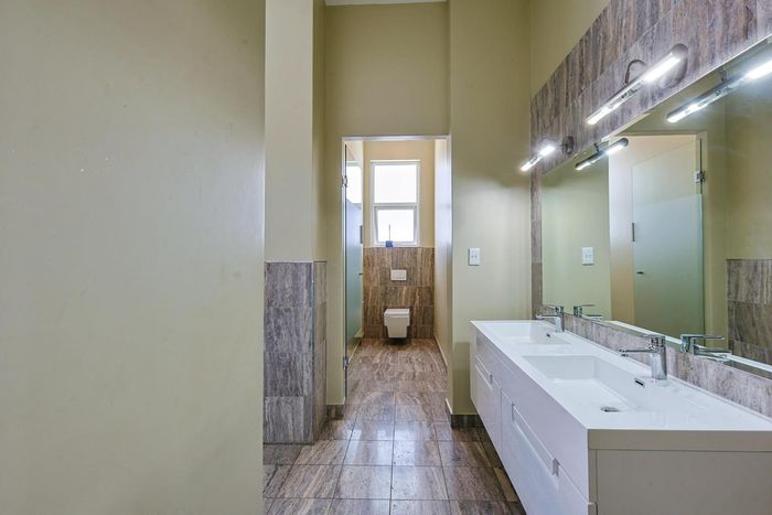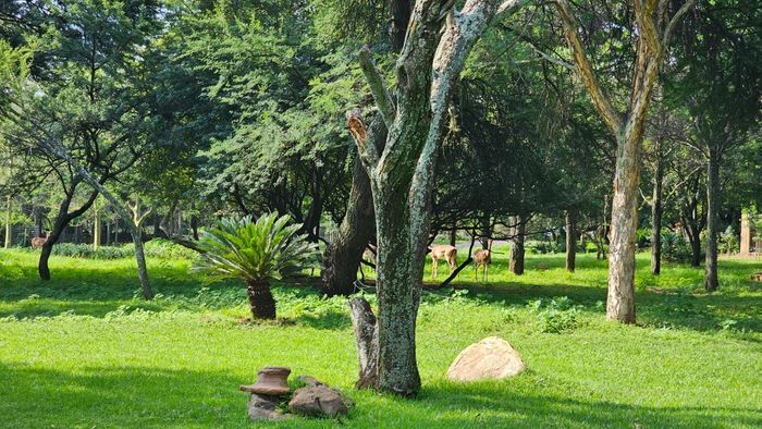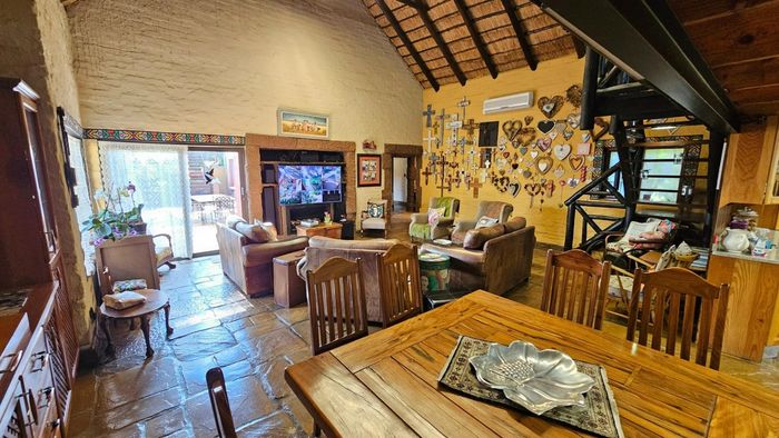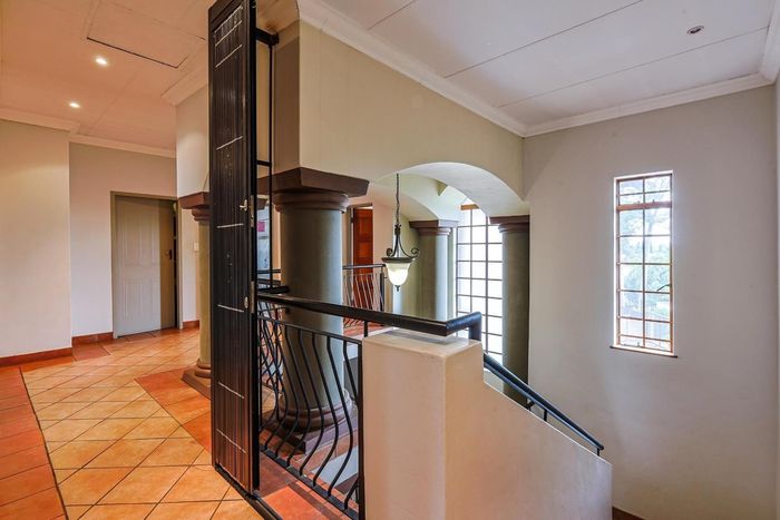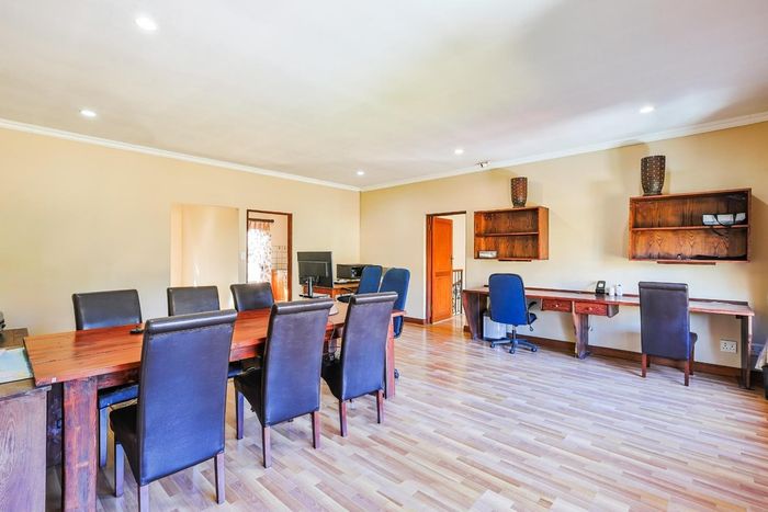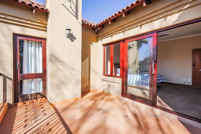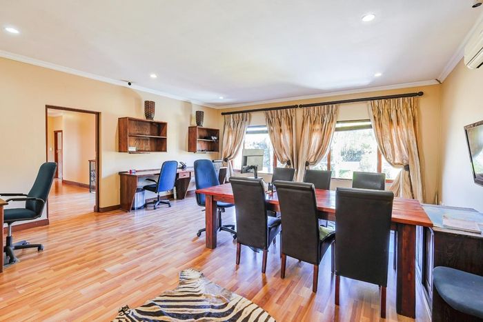 Lodge-style living amid bushveld in a sought-after Pretoria East wildlife estate, perfect for entertaining — enclosed braai room with kitchenette and panoramic eastern views. Three bedrooms, three bathrooms, two double garages.