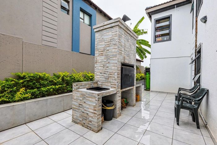 Enjoy relaxed suburban living with quick N4/N1 access, schools and shops nearby; pet-friendly unit with private garden and lock-up rondavel, three bedrooms, two bathrooms, double garage.