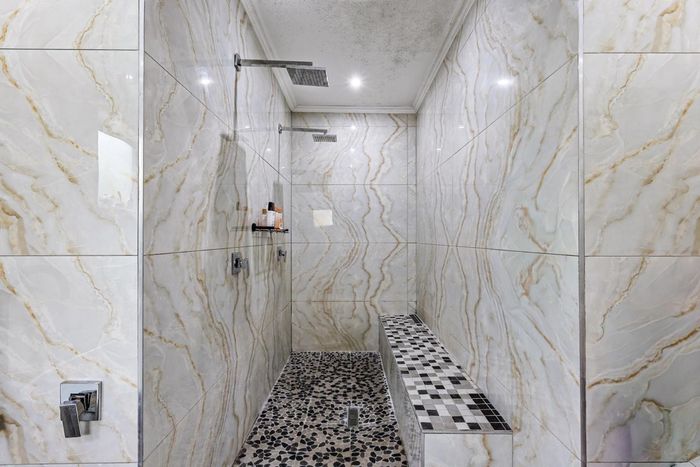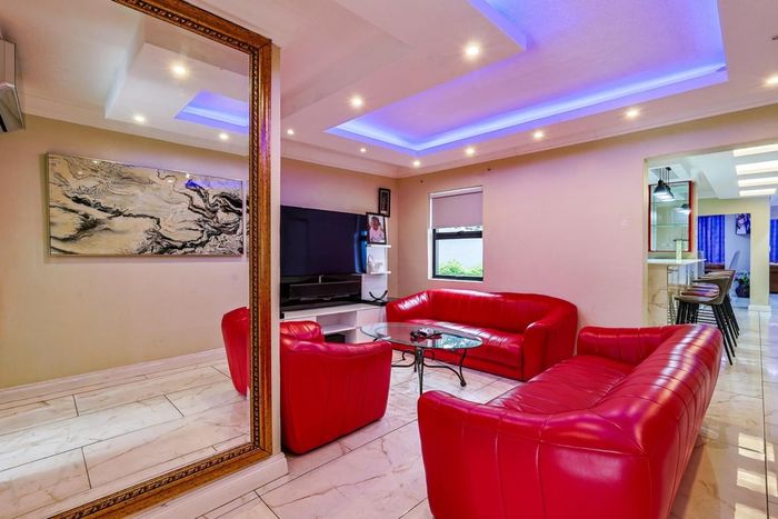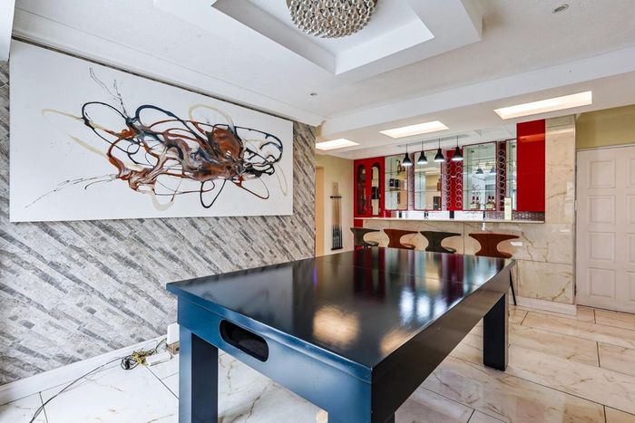 Enjoy effortless entertaining by the pool and enclosed braai room in a family-friendly neighbourhood, plus modern kitchen, solar backup, four bedrooms, 3.5 baths and two garages.
