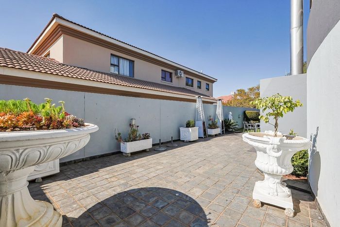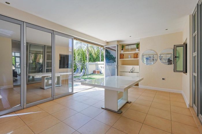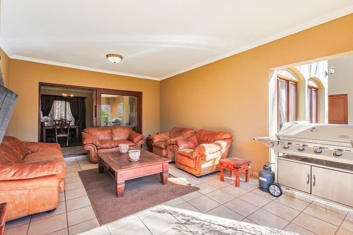 Entertainer's family oasis in Silver Lakes Golf Estate by the golf course; enclosed braai room opens to irrigated garden and pool. Five beds, 4.5 baths, double garage.