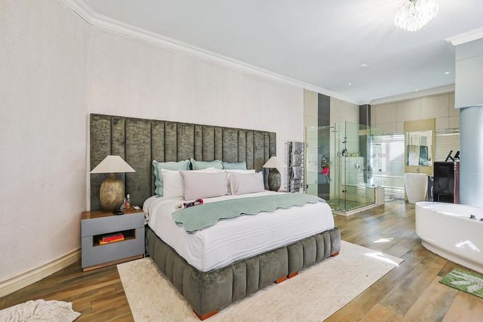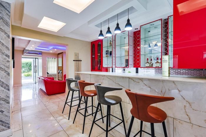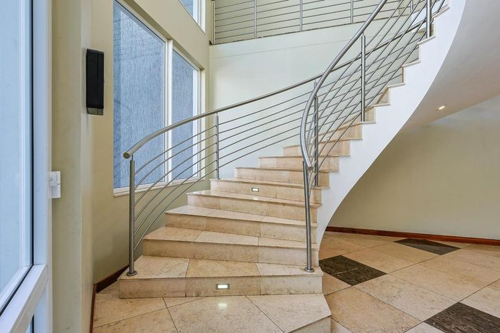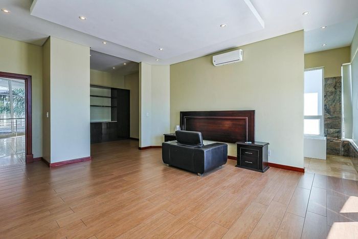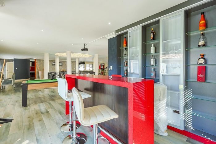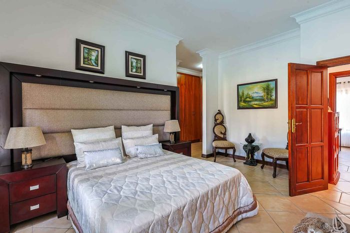 Entertainer's dream in prestigious Woodhill Golf Estate with covered patio and built-in braai overlooking pool and landscaped garden; four en-suite bedrooms, study and three-car garage.