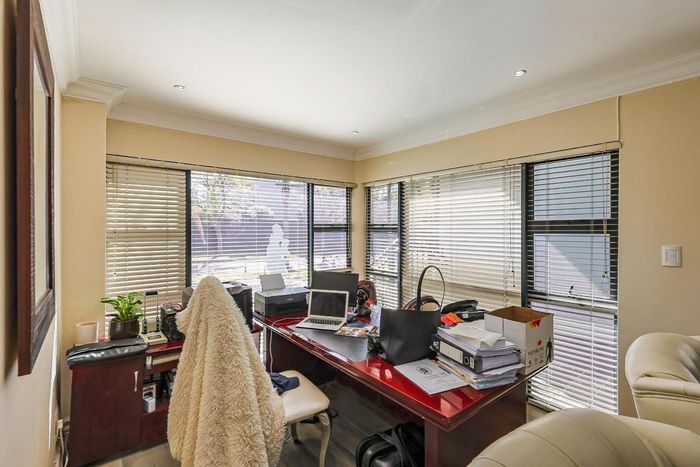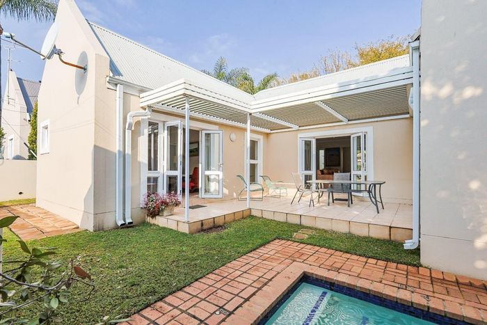 Effortless family living and entertaining in sought-after Faerie Glen, featuring a covered patio with built-in braai overlooking a pool, plus home office; three beds, 2.5 baths, double garage.