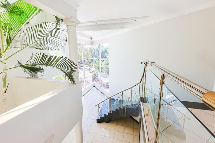 Live like you're on holiday in a modern glass palace set in a tranquil enclave with balcony sunset views, sparkling pool—six bedrooms, three bathrooms and three garages.