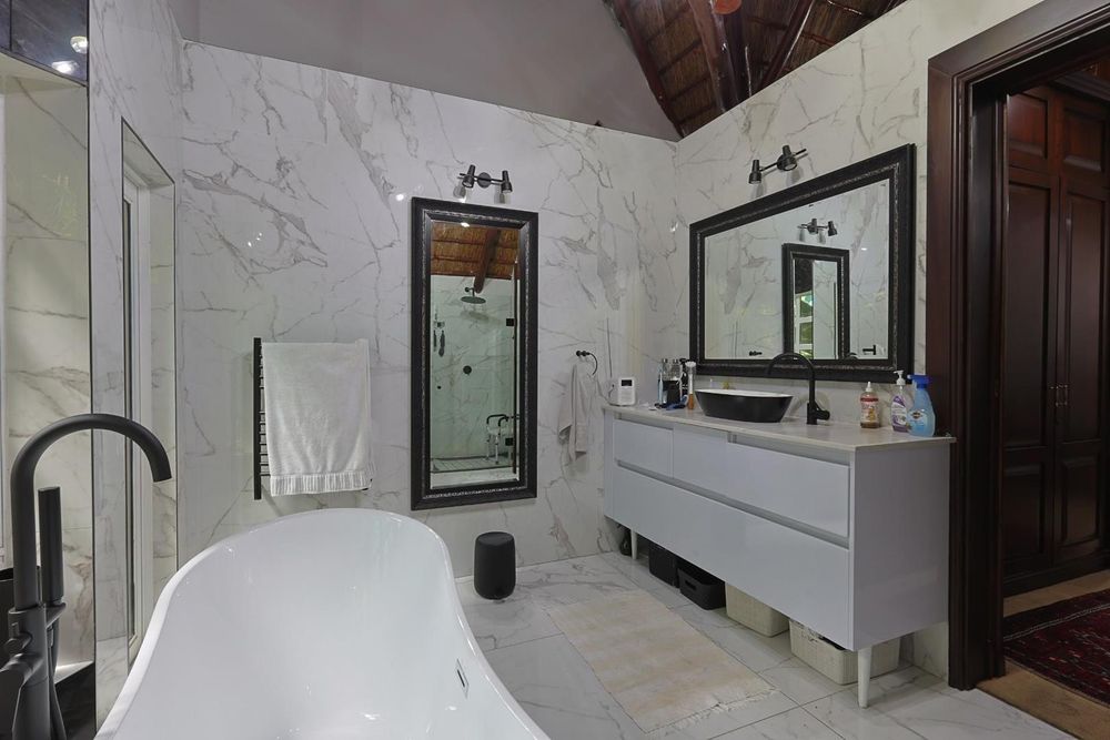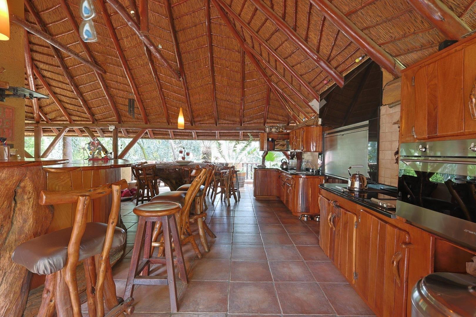 Recently tile-covered (two years ago), the thatch roof home boasts excellent “bones” and has been meticulously maintained. A substantial solar system, complemented by a large generator with automatic switch-on and switch-off functionality, ensures peace of mind and uninterrupted living. The kitchen is fitted with a gas and electric hob, while the entertainment area features a double gas braai - ideal for effortless entertaining year-round.