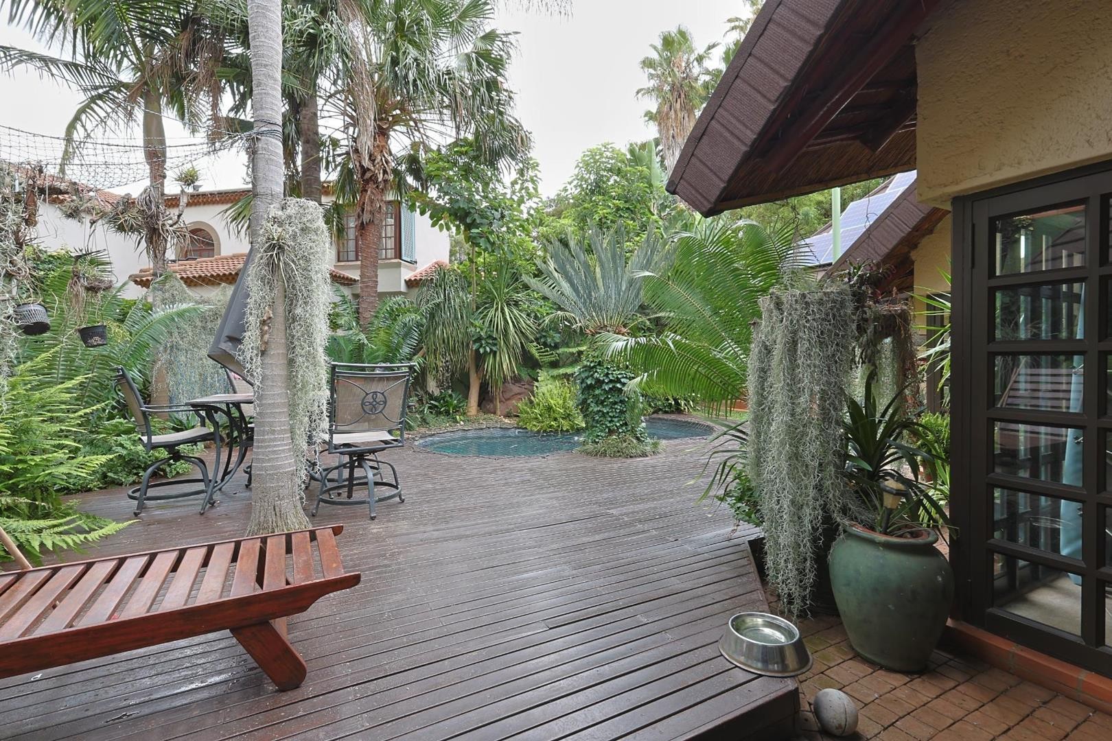 The main bedroom enjoys beautiful views over the pool and garden, creating a serene space where one can unwind, observe birdlife and simply enjoy the rhythm of nature. All bedrooms are fitted with built-in cupboards, and the hobby room can easily be converted into a fourth bedroom if required. The bathrooms are modern and well-appointed.