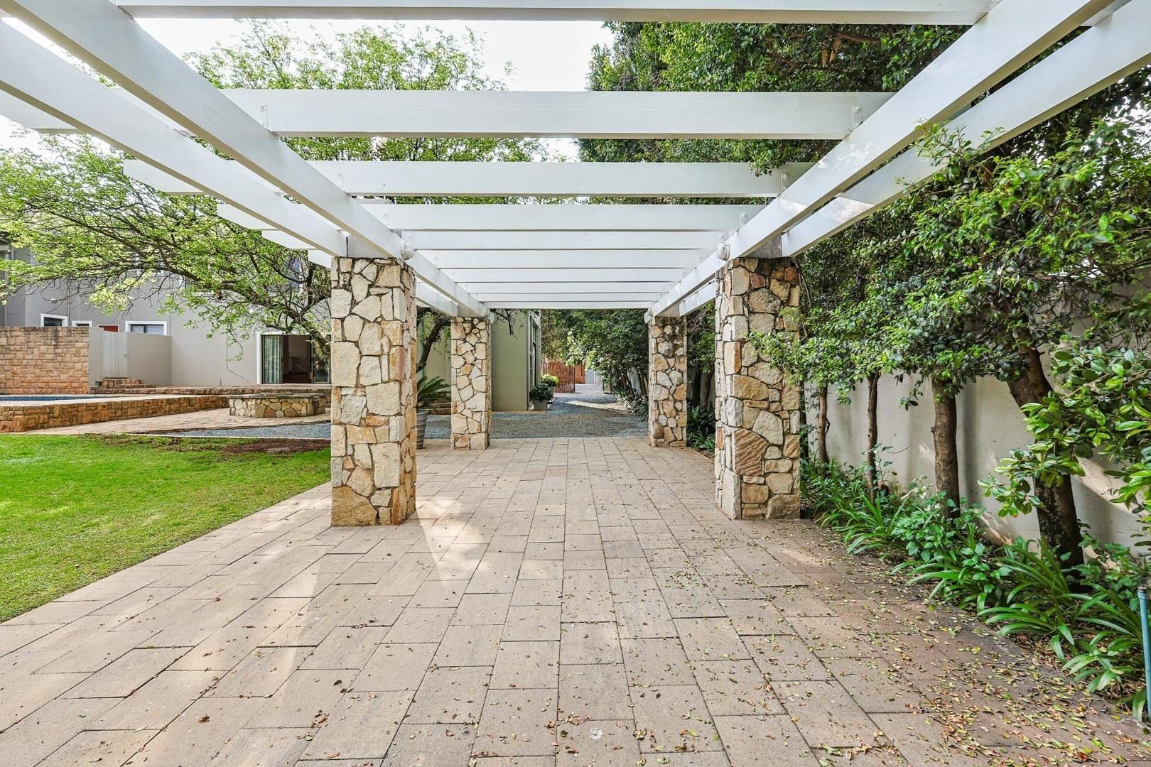 Enclosed braai room opening onto the garden and pool area