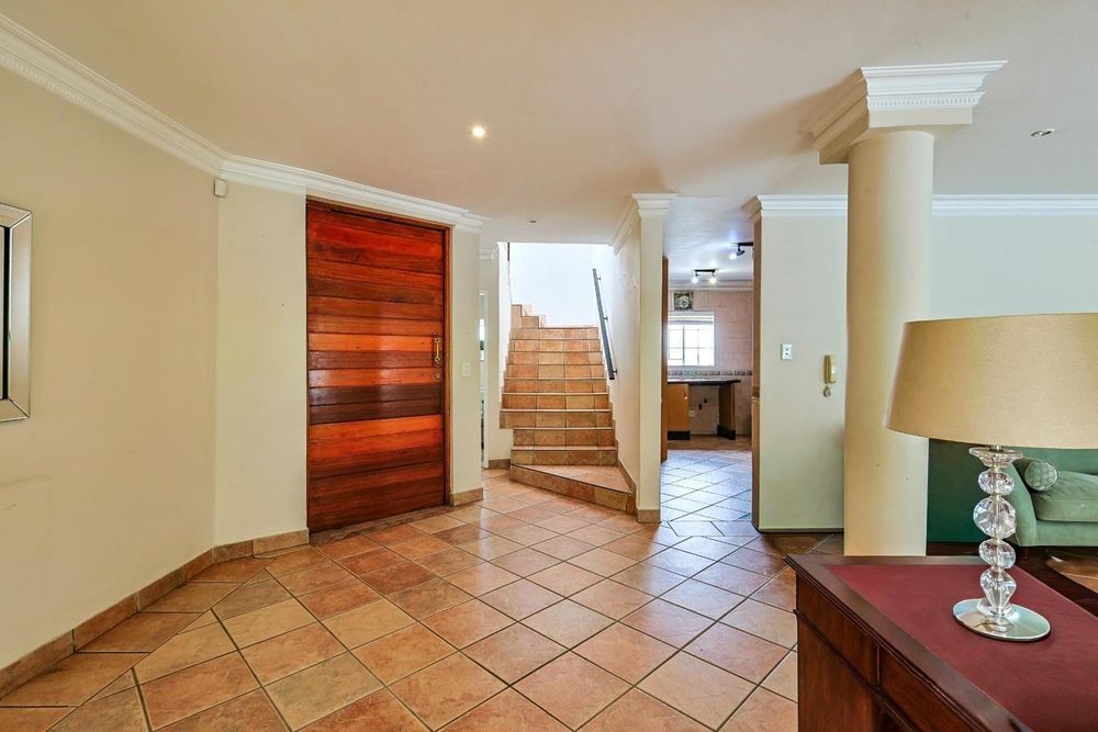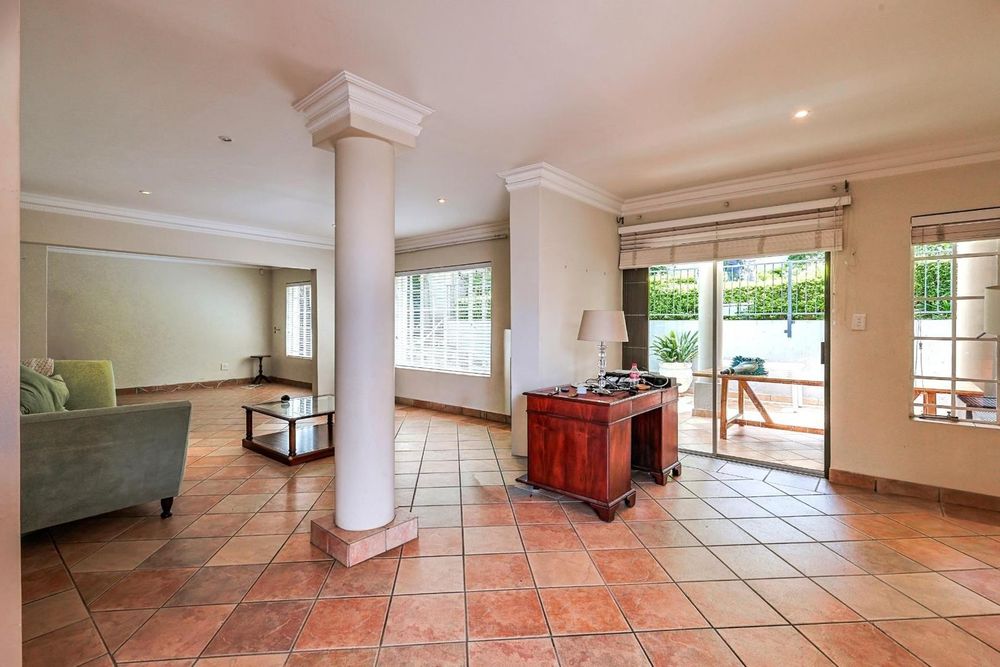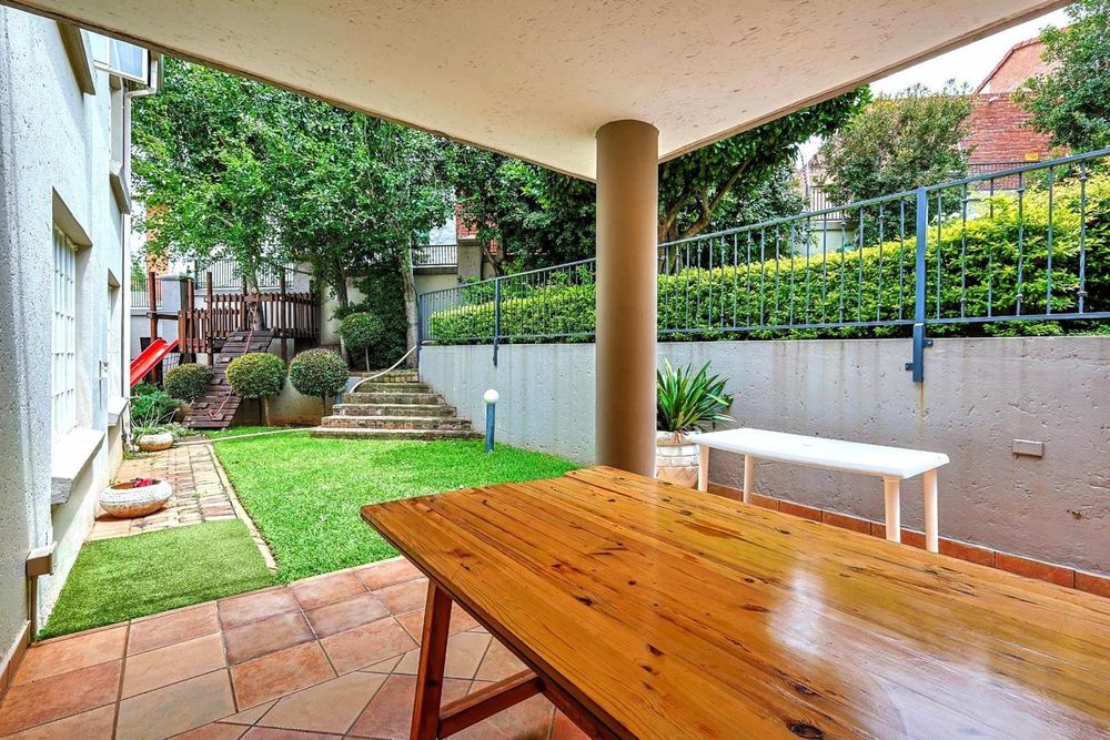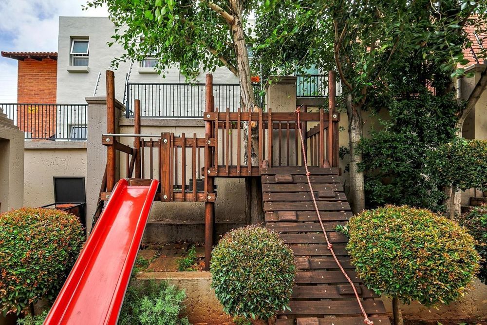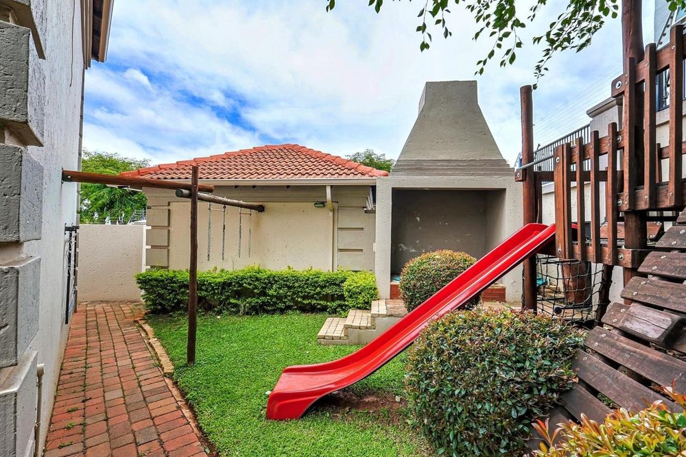 Transition effortlessly to the outdoors via the large undercover patio, complete with a built-in braai, overlooking a beautifully landscaped, low-maintenance garden and a private jungle gym for the children.