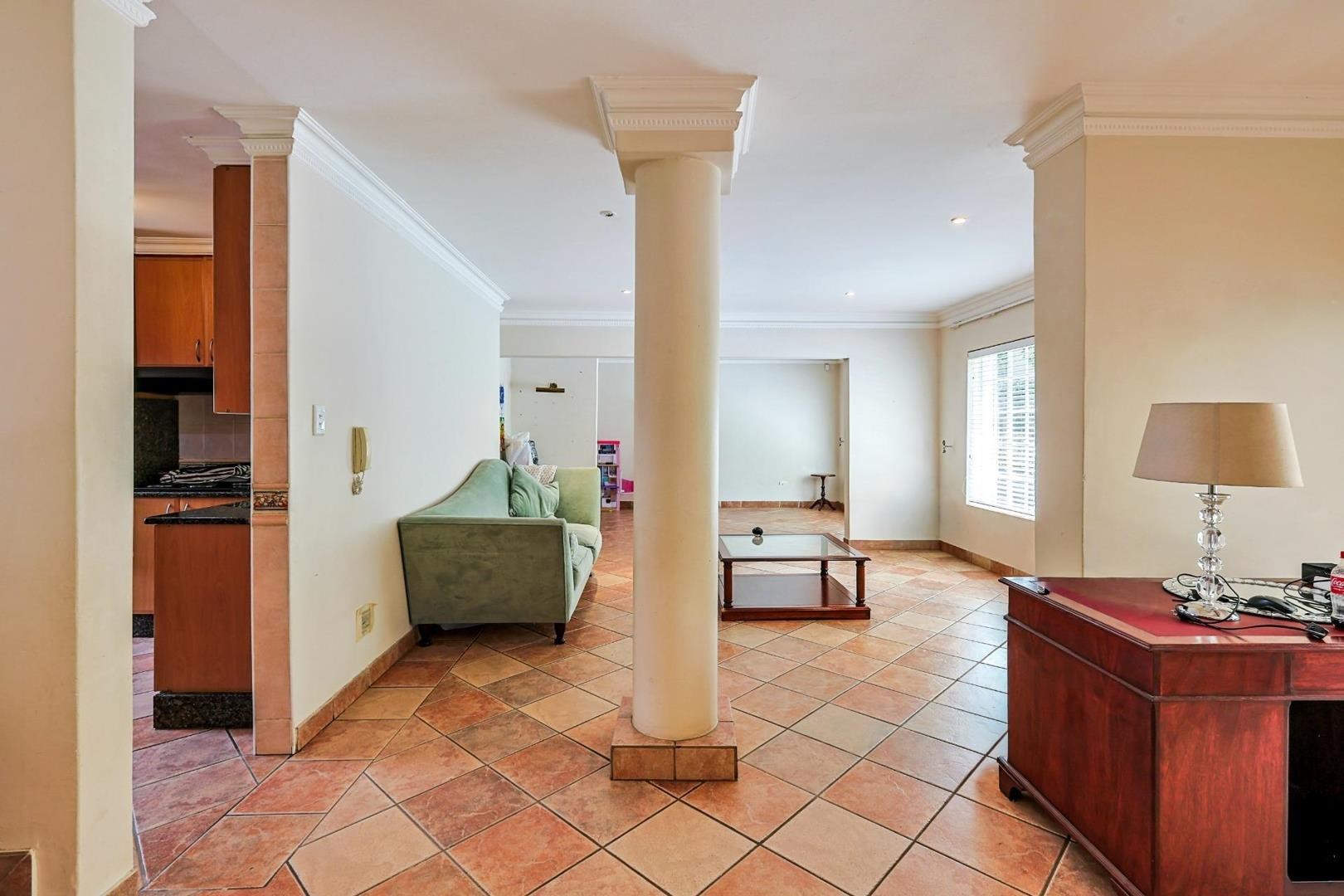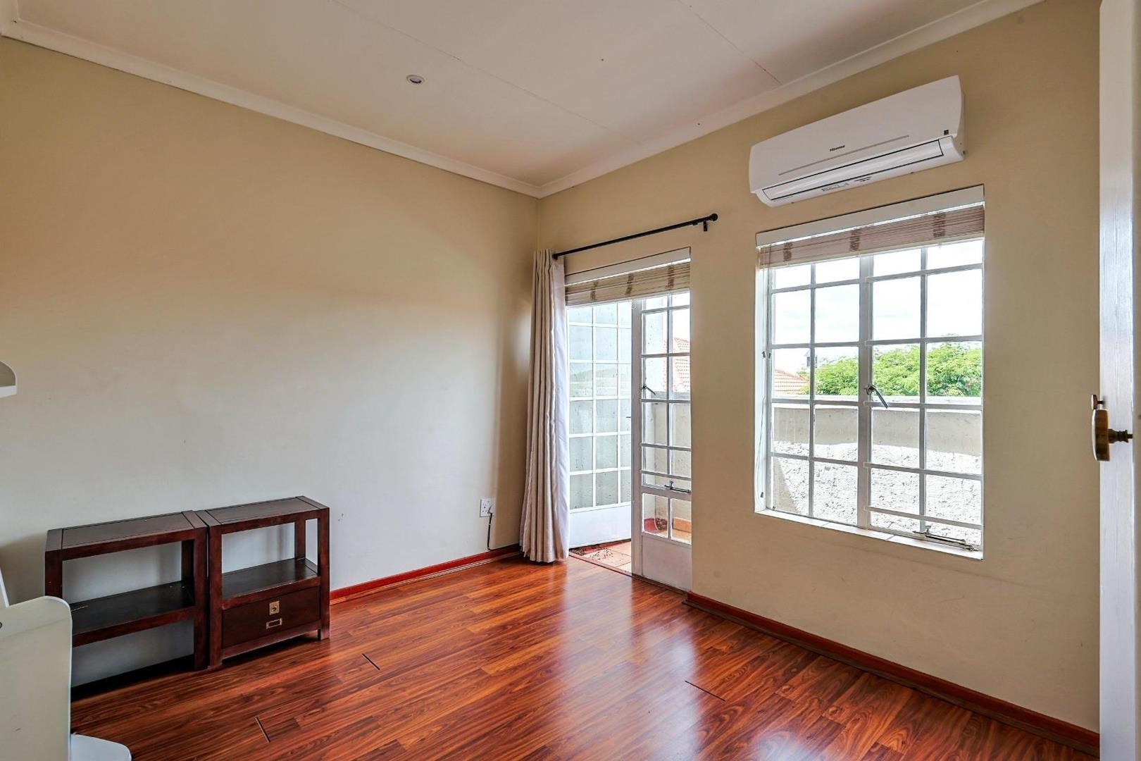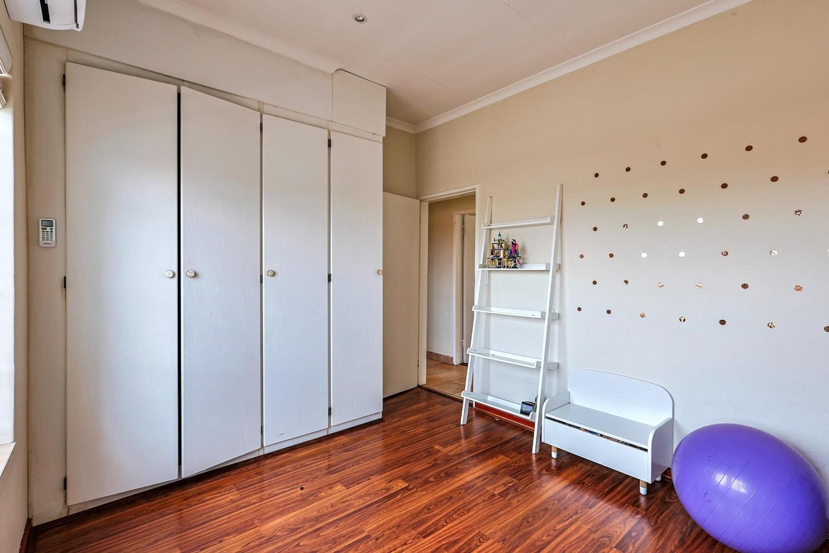 Transition effortlessly to the outdoors via the large undercover patio, complete with a built-in braai, overlooking a beautifully landscaped, low-maintenance garden and a private jungle gym for the children.