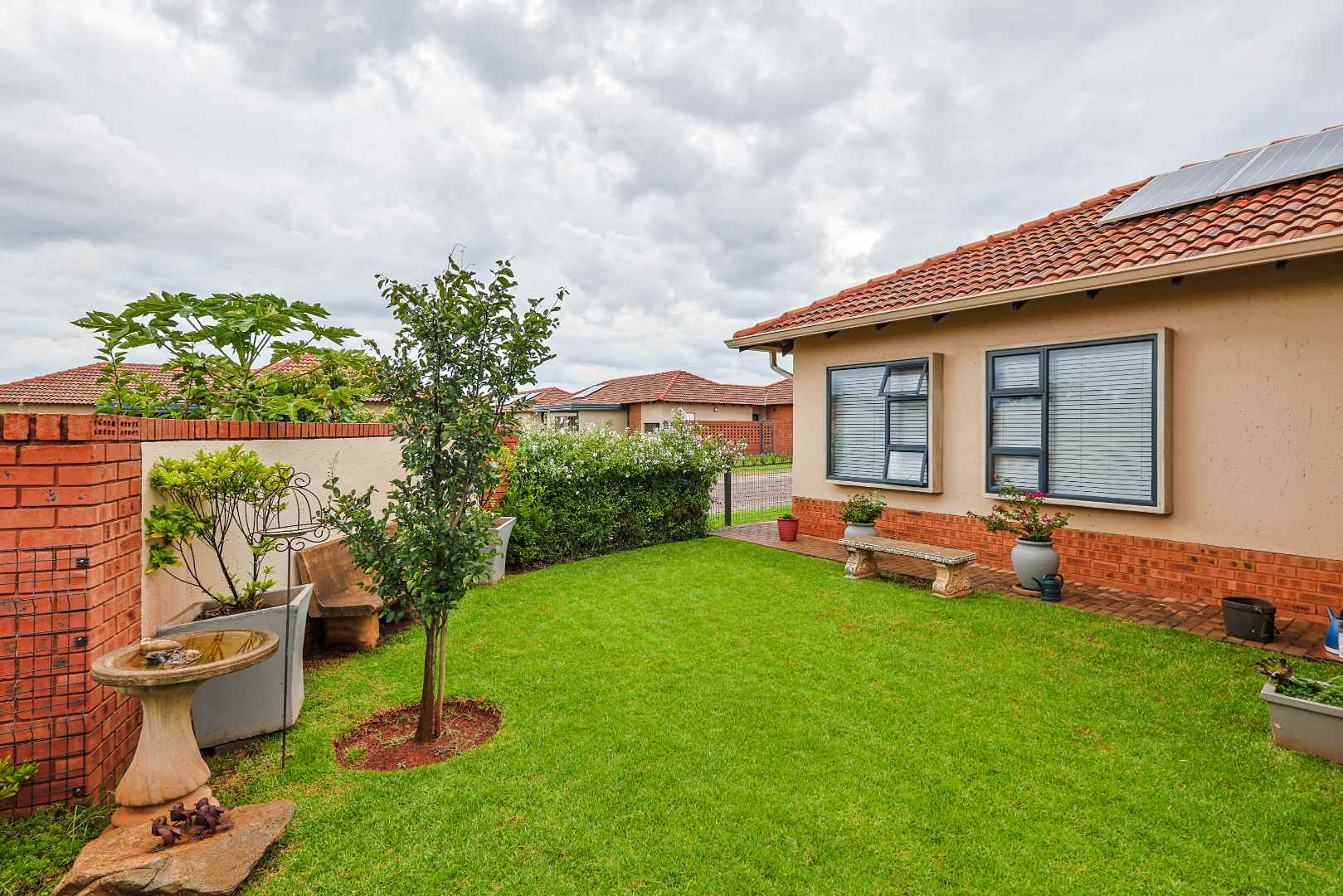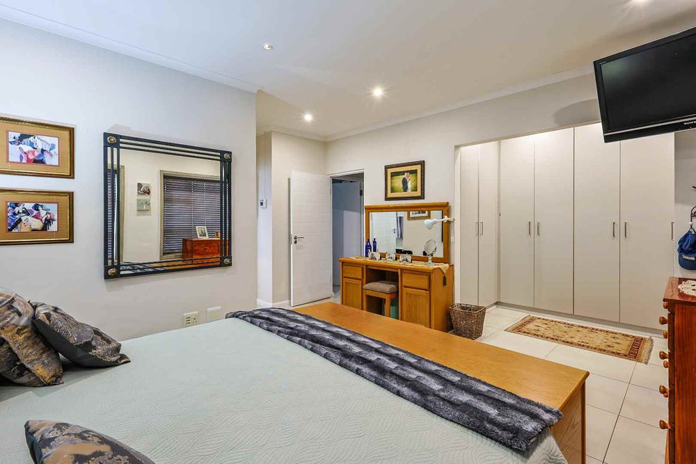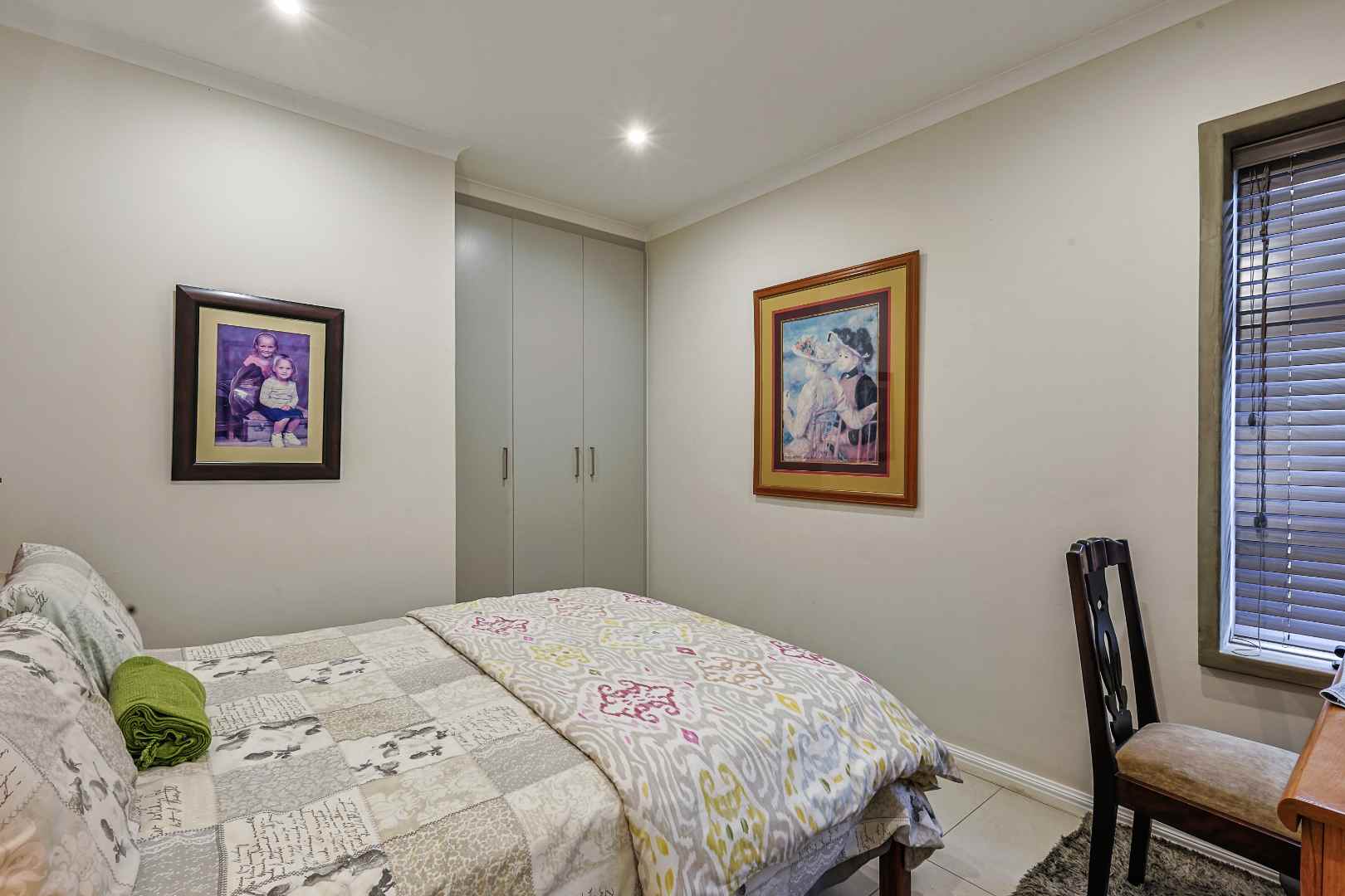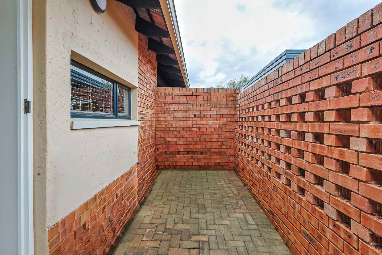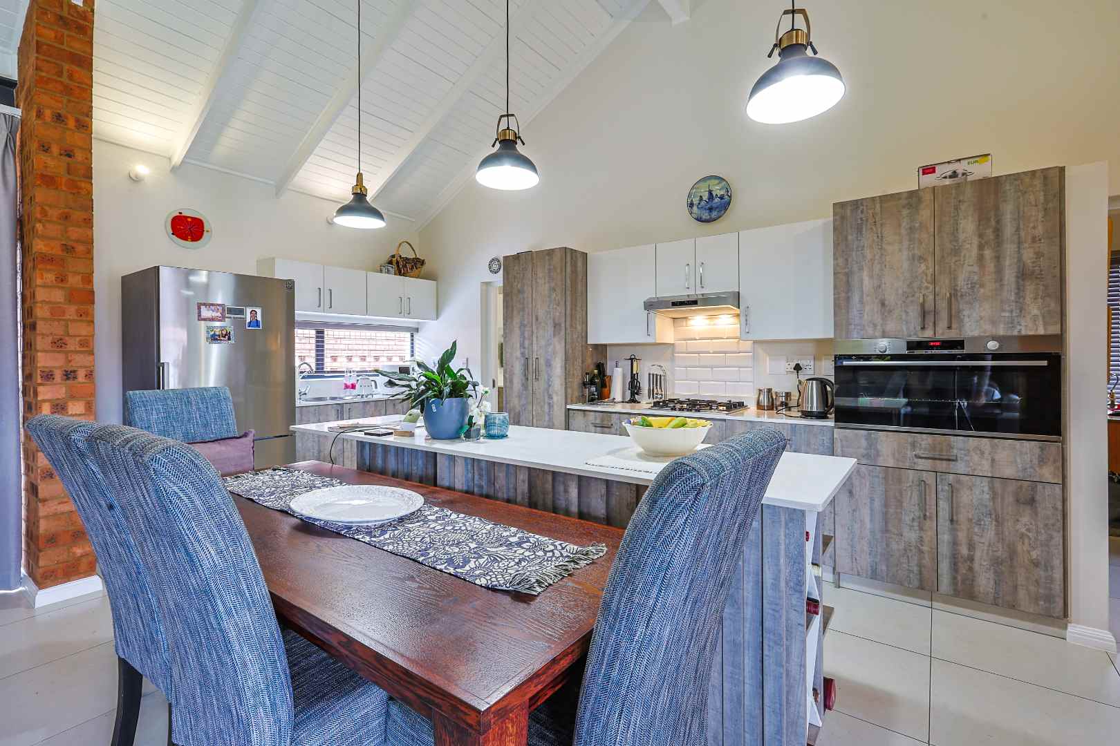 Sliding doors open onto a covered patio fitted with non-slip tiles and a built-in braai, overlooking a beautifully maintained and private garden — the perfect space for relaxing or entertaining.