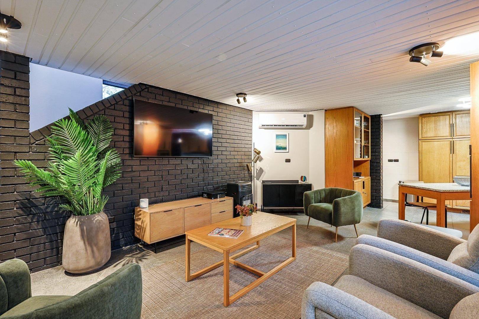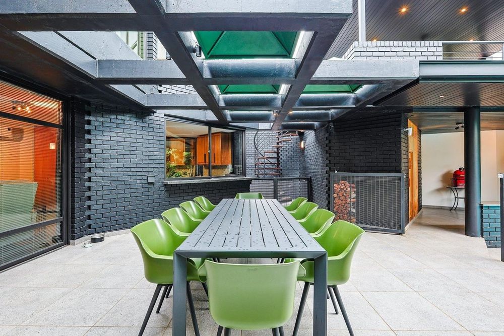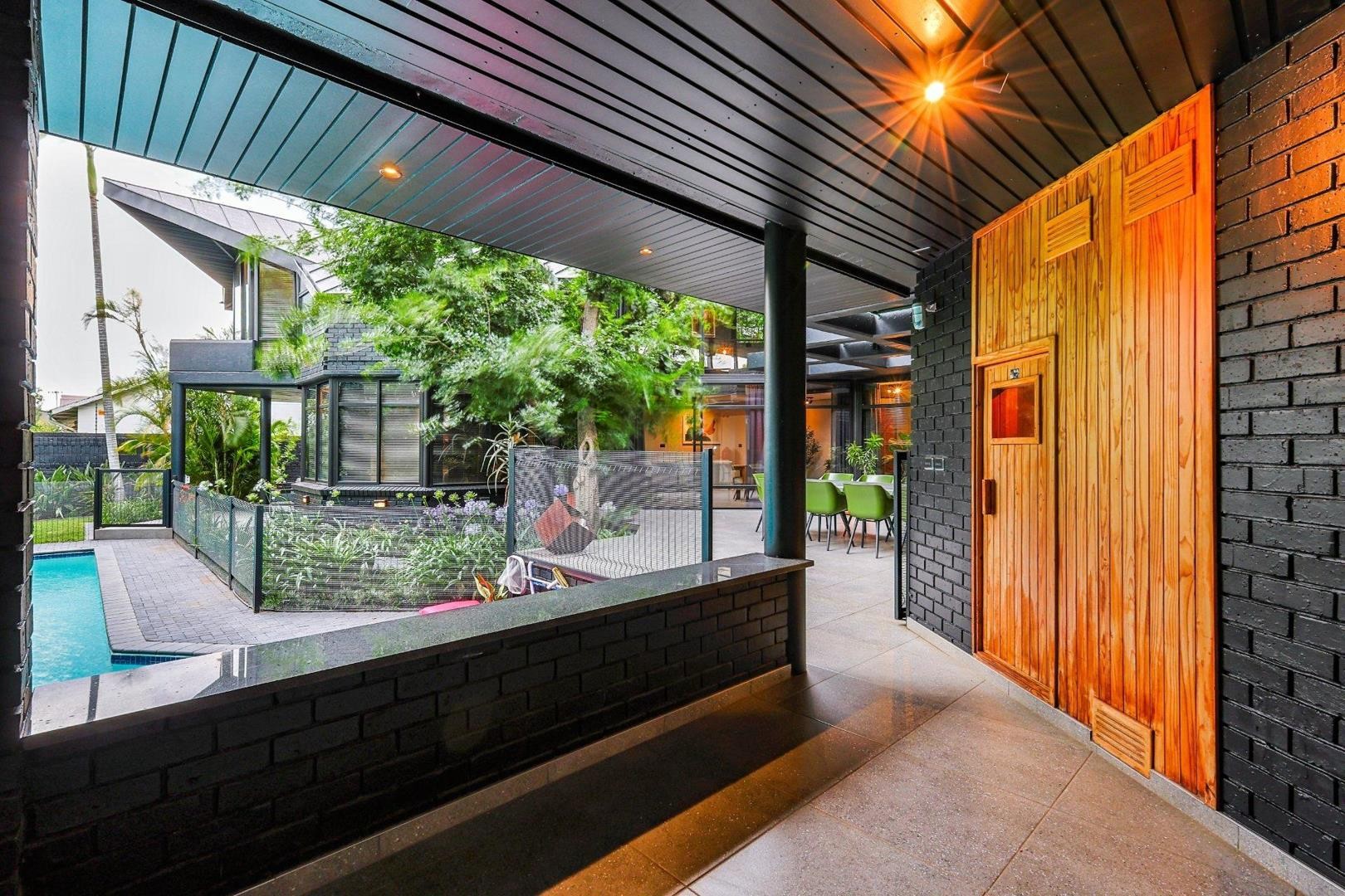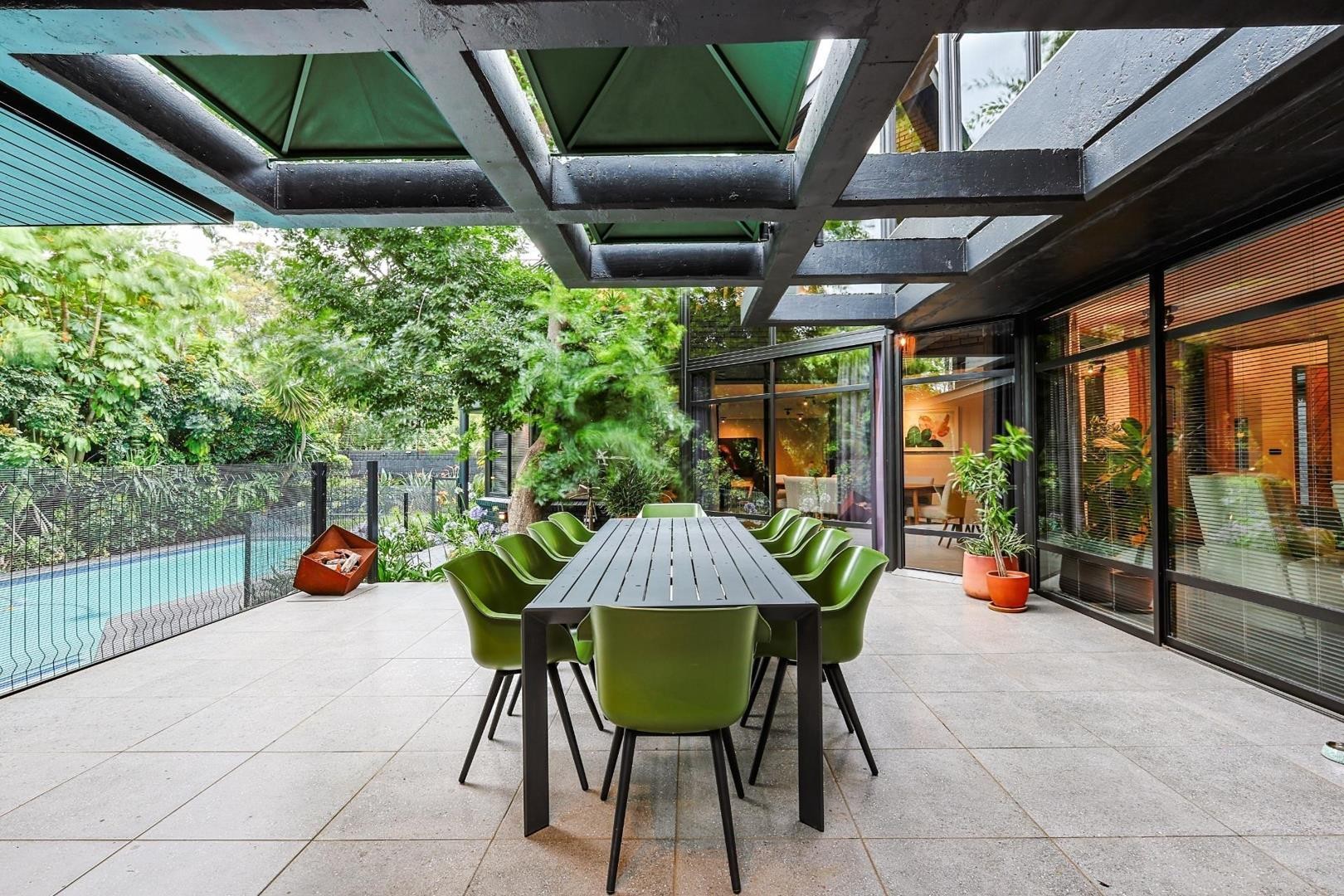 The outdoor space is meticulously designed for seamless, year-round hosting and ultimate relaxation, making it an idyllic retreat.
