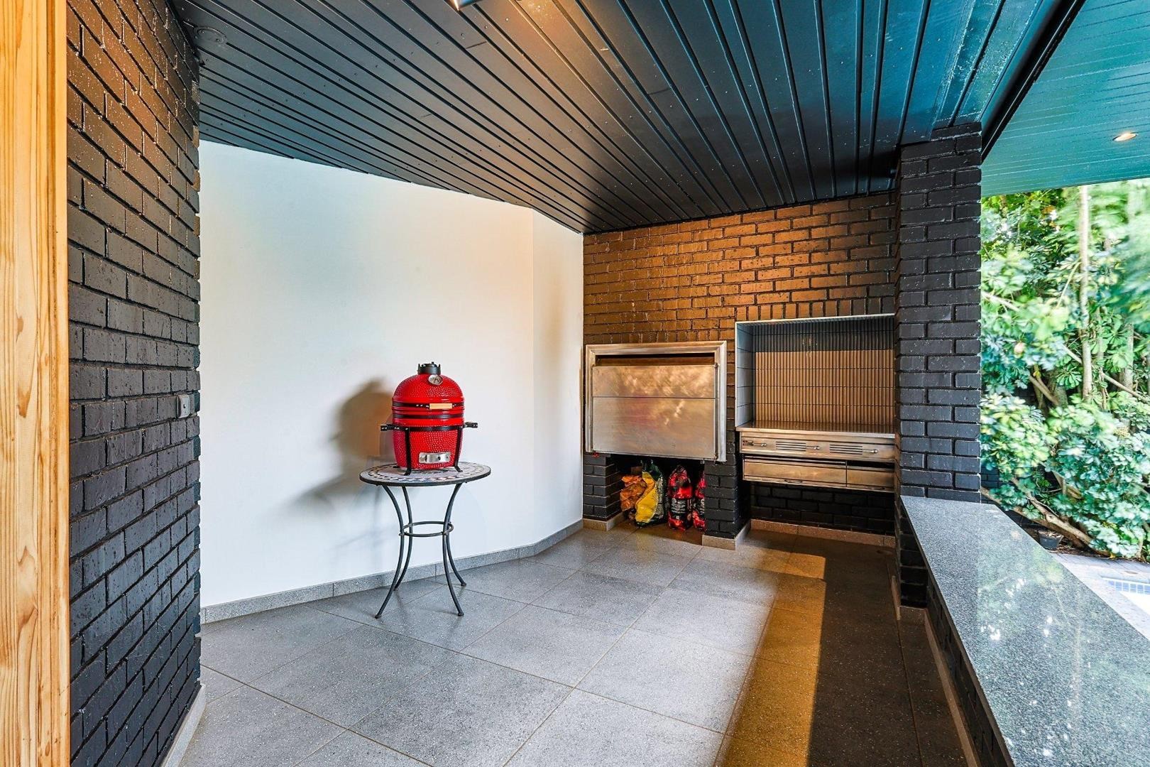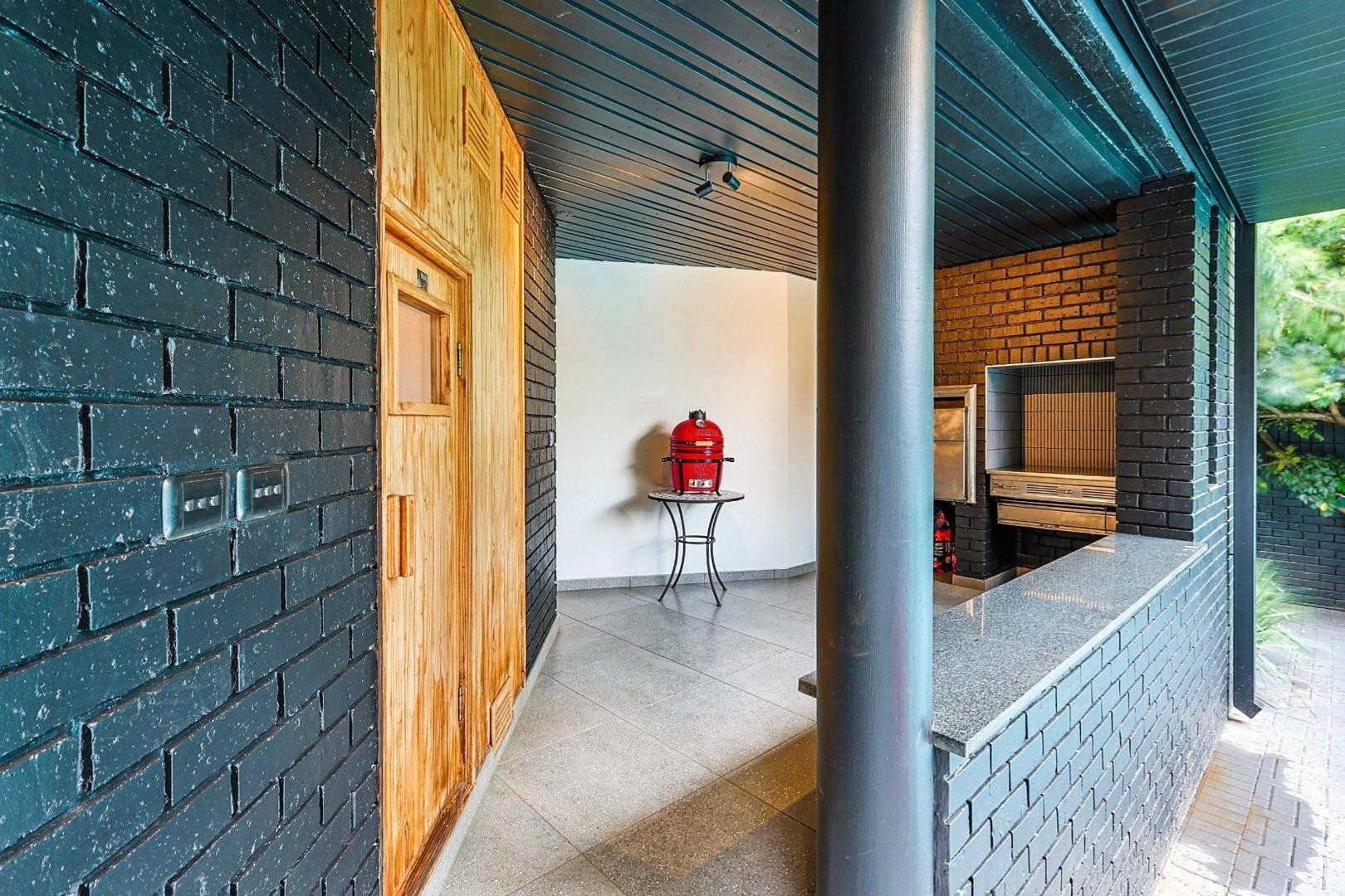 Alfresco Hosting: An expansive patio area houses a built-in, combination Gas and Wood Braai for diverse culinary entertainment.