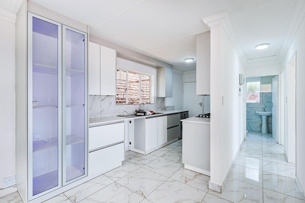 The modern kitchen is equipped with granite countertops, gas and electric hobs, an electric oven, washing machine, and single fridge—ideal for convenient everyday living.